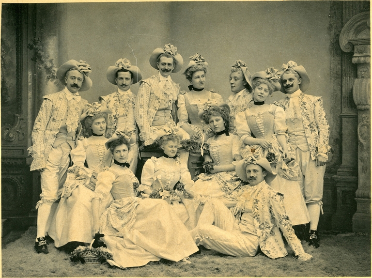 Torino – Carnevale 1899 – Gruppo in costume di Carnevale – Conte Antonelli – Cav. Cornetta – Cav. Ratta – Nina Sambug – Marchesa Boyl – Augusta Restanio – Conte Brozolo – Signorina Marmorito – Signor Cigala – E. Brozolo – M. Spaia – Conte Pamparato