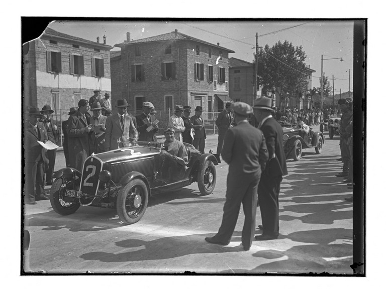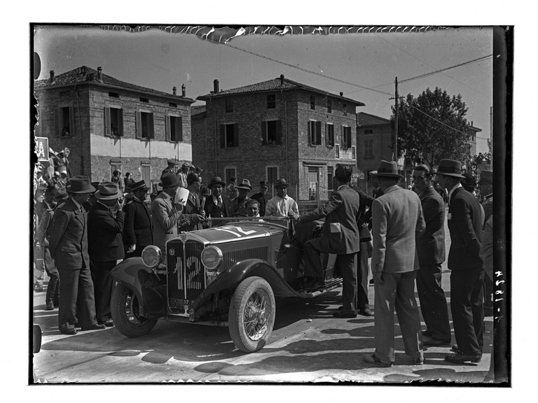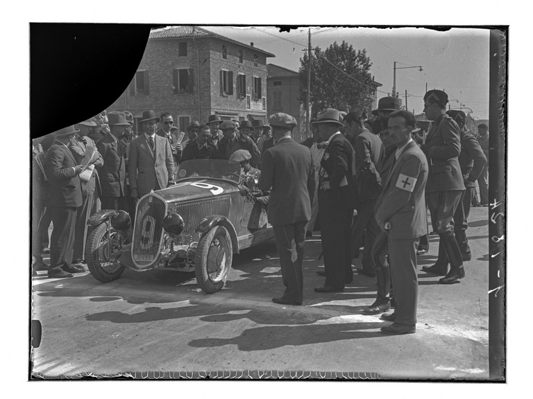 Il servizio documenta alcuni momenti della Mille Miglia, storica gara automobilistica che ha avuto origine a partire dal marzo 1927. Da un’analisi approfondita dei veicoli presenti nelle riprese potrebbe trattarsi dell’edizione del 1933: si riconoscono infatti due Fiat 508 S Balilla Spider Sport (FM_00311 e FM_00312) e una Bianchi S8 torpedo, carrozzata Touring (FM_00310). Durante la Mille Miglia 1933 le auto n. 2 e n. 9 erano proprio due Balilla 508S, condotte rispettivamente dalle coppie di piloti Spotorno-Ghirlinghelli e Gilera-Sertori, mentre dai registri di gara risulta che la sola Bianchi a partecipare fu un modello S5 torpedo (e non S8) con il numero 12 ed equipaggio Della Mura-Bertarolo: potrebbe trattarsi di un errore di trascrizione, negli elenchi dei partecipanti dove spesso si trovano imprecisioni importanti. La Bianchi S8 aveva comunque elementi molto simili al modello S5 seconda serie, benché fosse un’auto poco competitiva perché di vecchia concezione e piuttosto pesante. Un altro elemento che concorre a una datazione al 1933 è la targa della fotografia FM_00312, del tipo in uso dal 1927 al 1933: da ottobre 1934, infatti, divenne obbligatoria la sostituzione delle vecchie targhe con i nuovi modelli. L’immagine FM_00320 documenta l’attraversamento del Po sul ponte di barche di Colorno-Casalmaggiore: non sappiamo se sia stata realizzata contestualmente alle altre ma si può ipotizzare in alternativa la data 1936 in cui la Balilla n. 9 era condotta dalla coppia di piloti Panzacchi-Becchetti.
