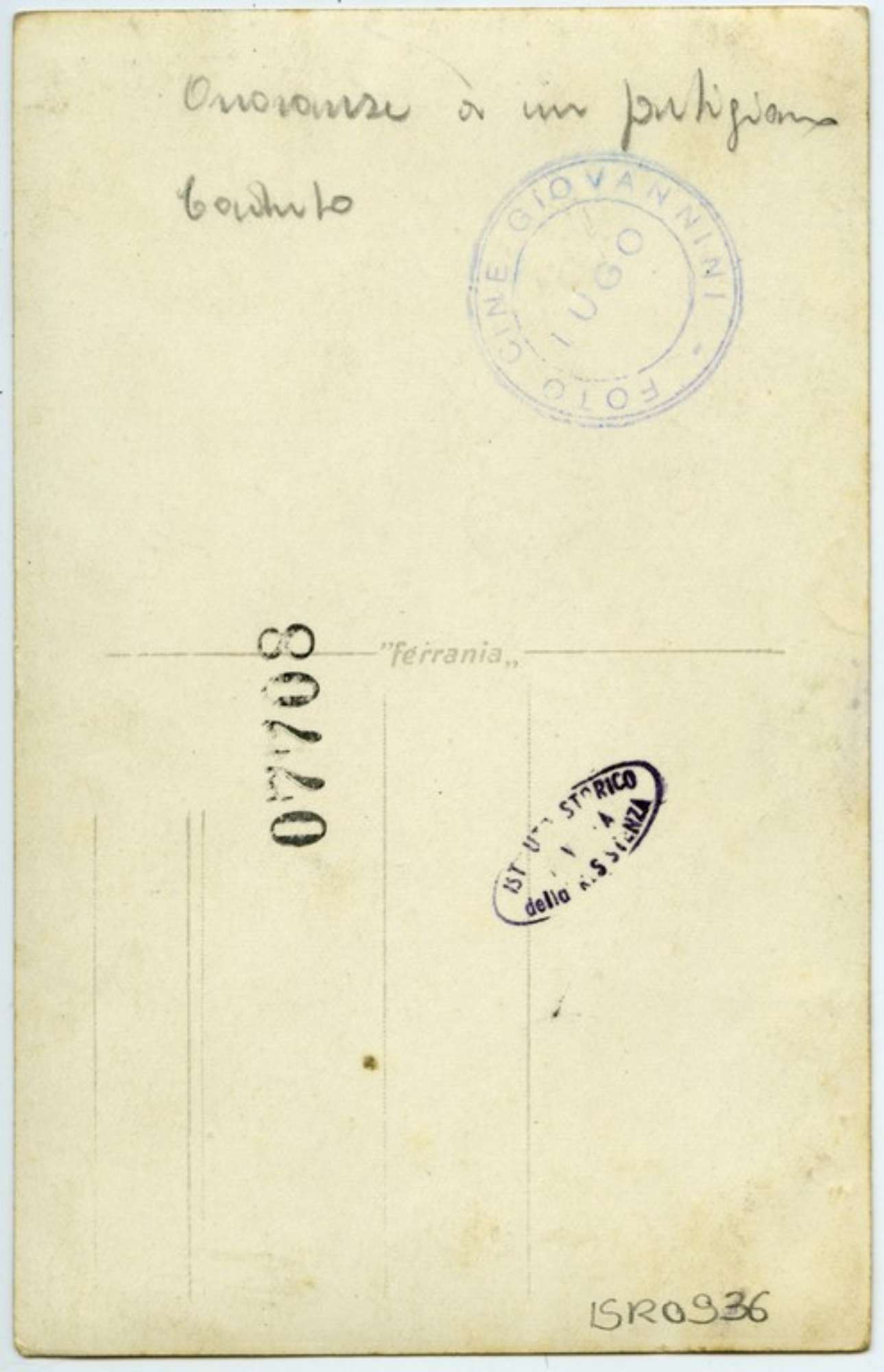 Potrebbe trattarsi dell'evento fotografato anche se il vestiario pesante e la vegetazione spoglia che compare nelle altre fotografie ascrivibili allo stesso evento, fanno pensare all'inverno 1944-1945. Il funerale poteva essersi svolto solamente in territorio liberato, d'altra parte Lugo è stata liberata il 10 aprile 1945 ed è altamente improbabile che precedentemente a tale data Giovannini avesse superato la linea del fronte data la pericolosità.