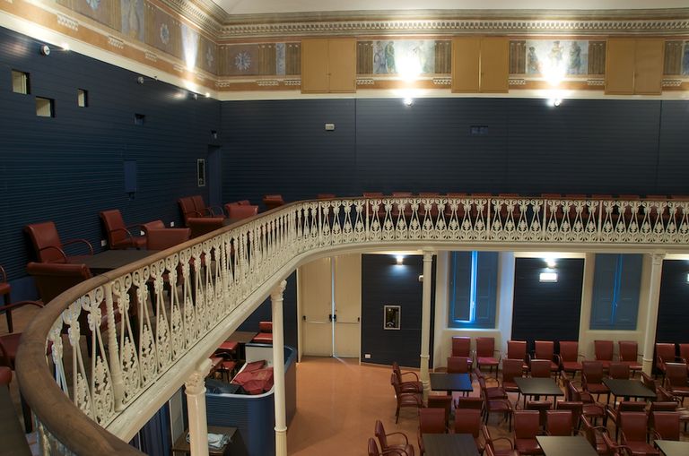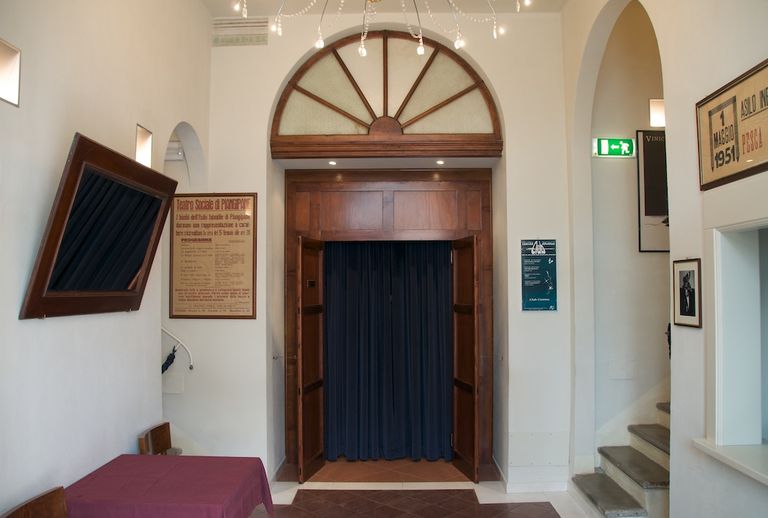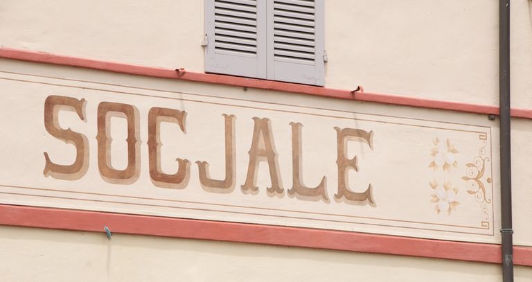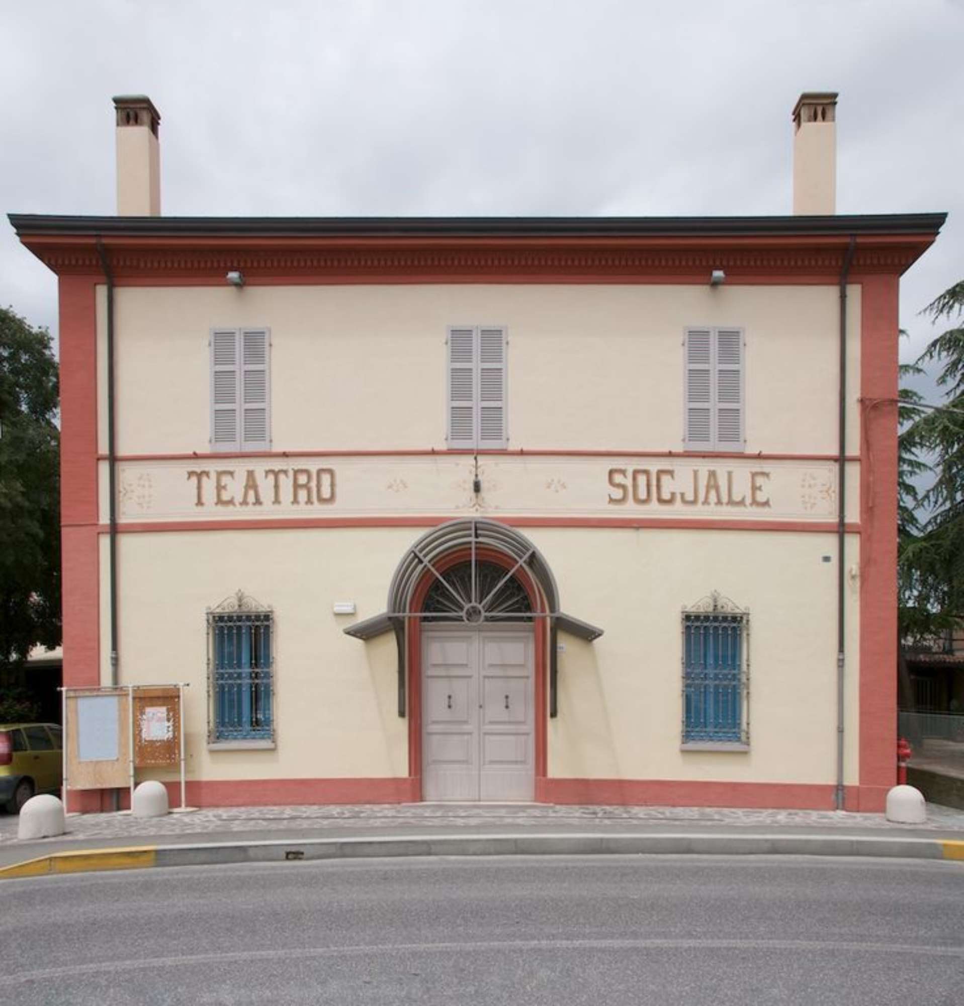 Infine una curiosità, la denominazione Socjale con la “j”, pare sia da attribuire al decoratore che realizzò il cartiglio dipinto sulla facciata del teatro, il quale diede la preferenza a questa lettera, rispetto alla “i” normale, trovandola nell’insieme più armoniosa e proporzionata all’intera scritta.