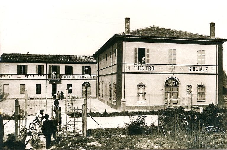 Le origini di questo teatro risalgono al 1909, quando i soci della locale Cooperativa Agricola Braccianti ne deliberarono l’edificazione e due anni dopo acquistarono all’uopo un terreno posto a fianco della locale sede del Partito Socialista “Carlo Liebknecht”.