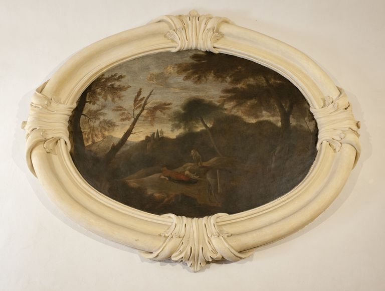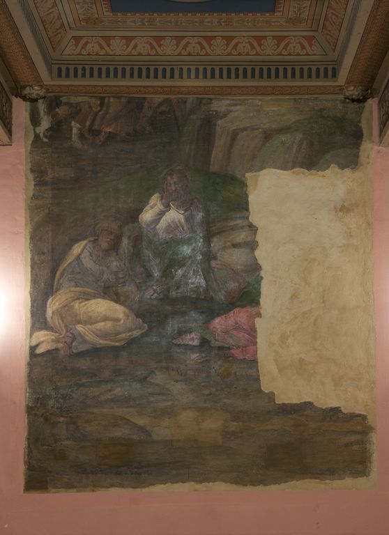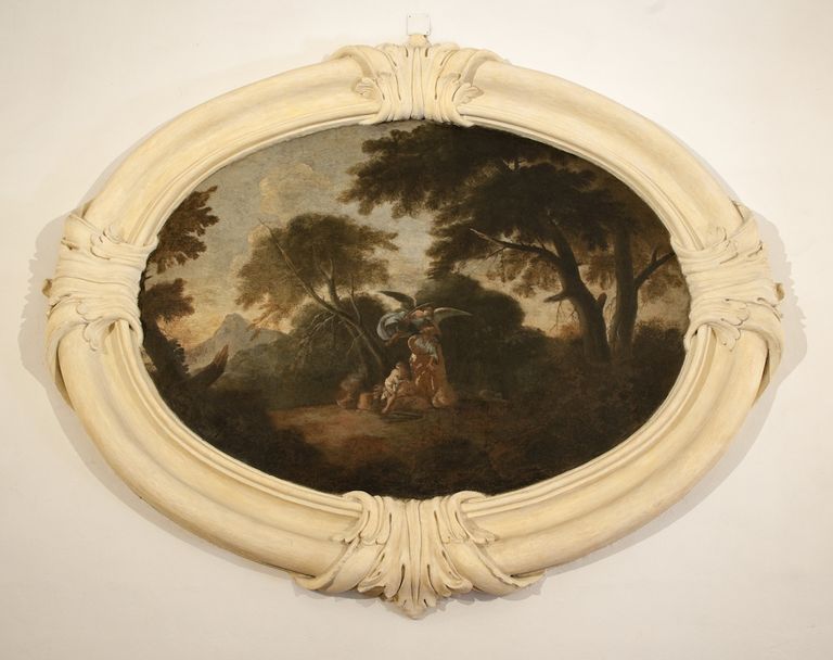 Bologna, Teatro di San Salvatore, ingresso foyer: particolare con scena biblica, ovale dipinto ad olio su muro sec. XVIII di autore anonimo (Foto di Andrea Scardova, IBC) 2014