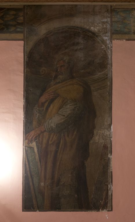 Bologna, Teatro di San Salvatore, la sala: particolare del lacerto di affresco parietale dell'antica sala del Capitolo, il profeta Isaia, opera di Biagio Pupini detto delle Lame (Foto di Andrea Scardova, IBC) 2014