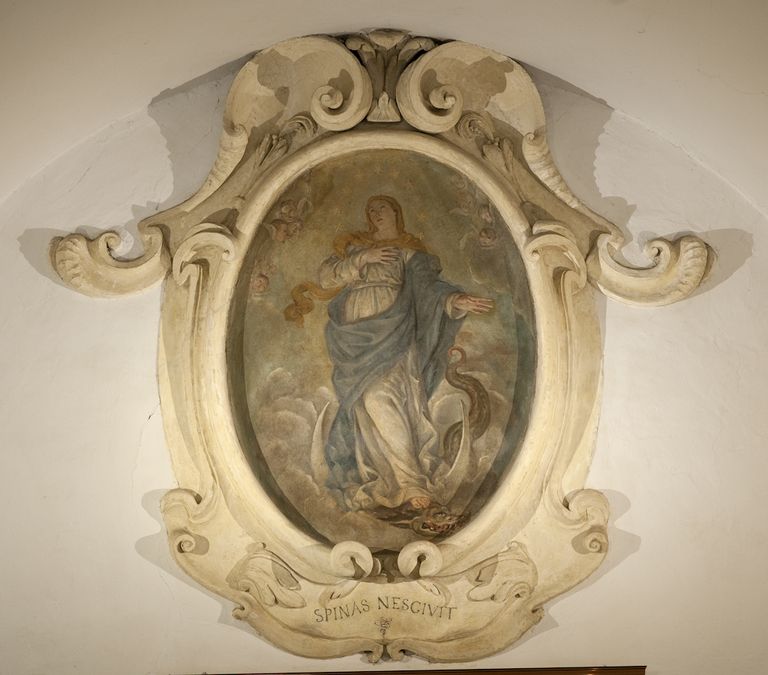 Bologna, Teatro di San Salvatore, ingresso foyer: particolare con Immacolata dipinta su muro sec. XVII di autore anonimo (Foto di Andrea Scardova, IBC) 2014
