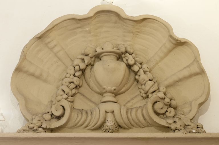 Bologna, Teatro di San Salvatore, ingresso foyer: particolare decorativo di sovra porta in stucco sec. XVII (Foto di Andrea Scardova, IBC) 2014