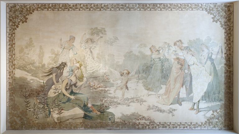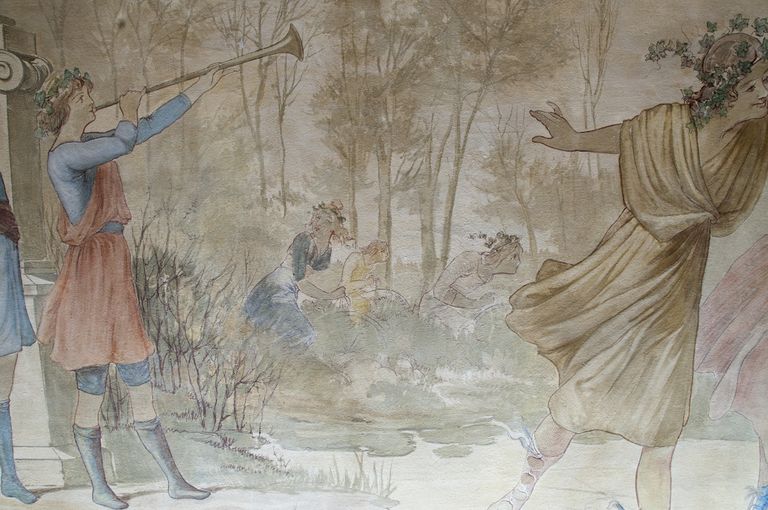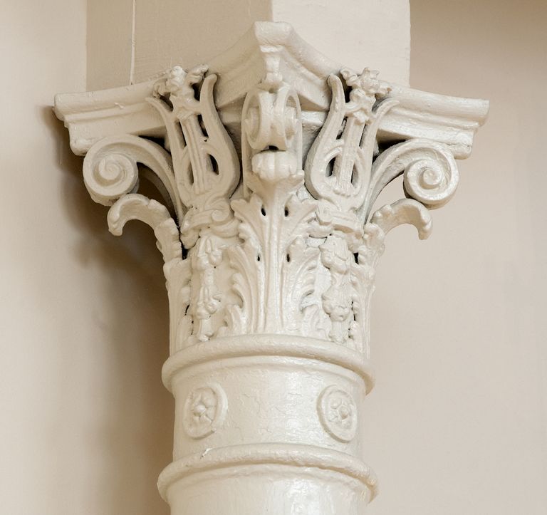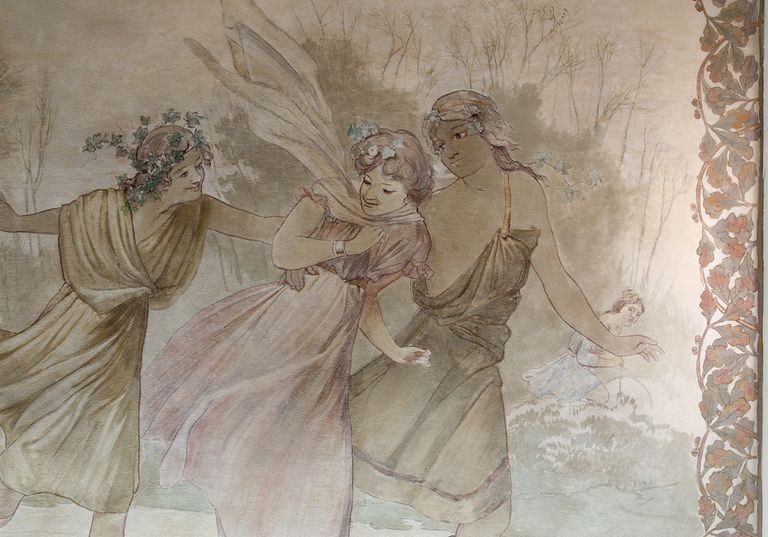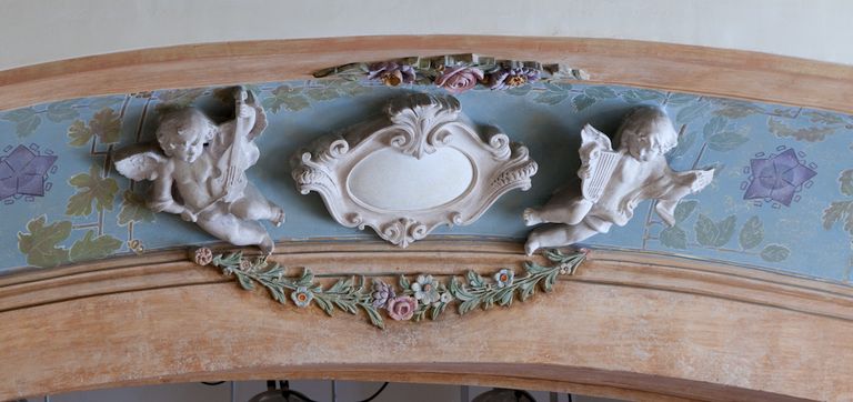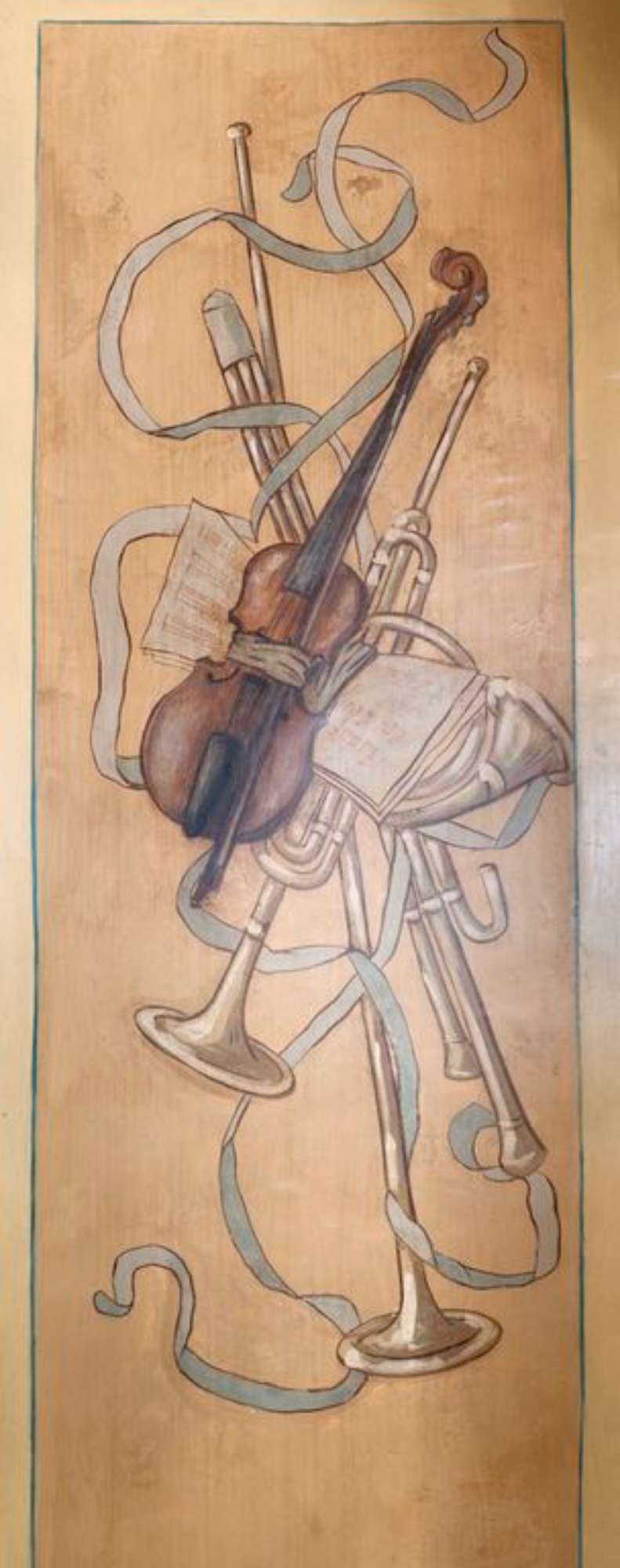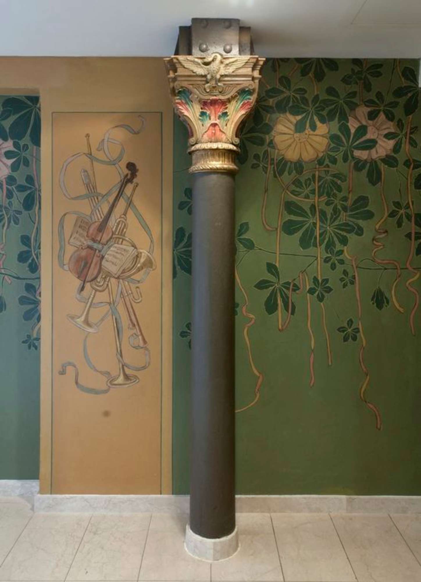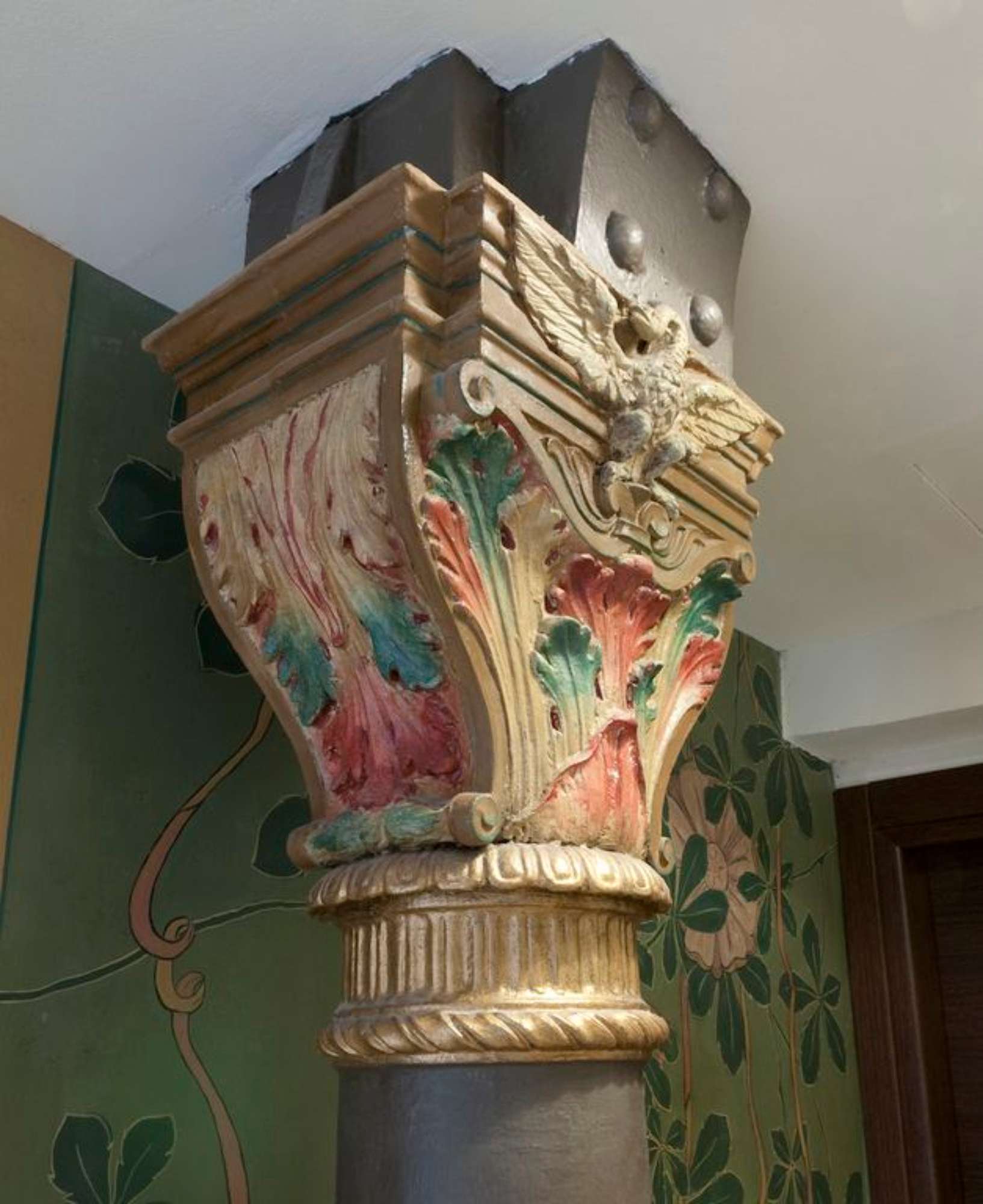 Elementi caratterizzanti decorazioni pittoriche, colonnine liberty in ghisa