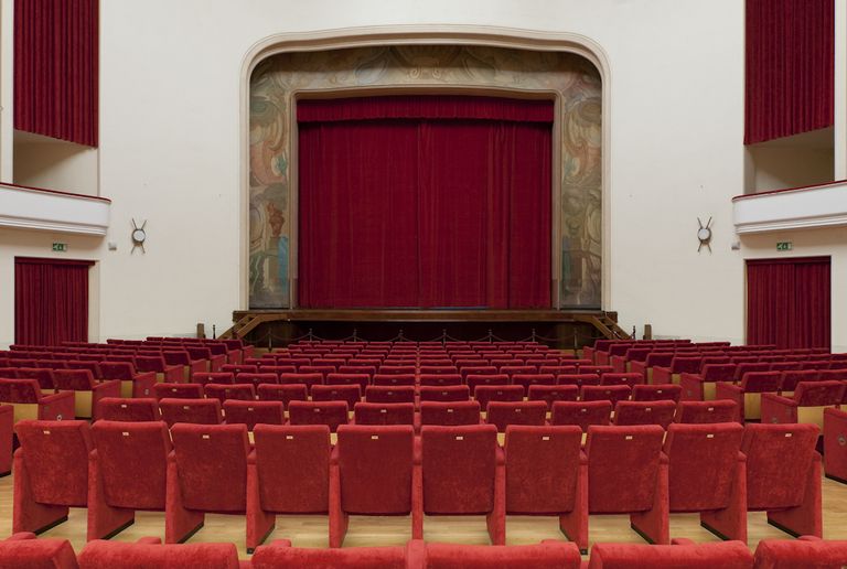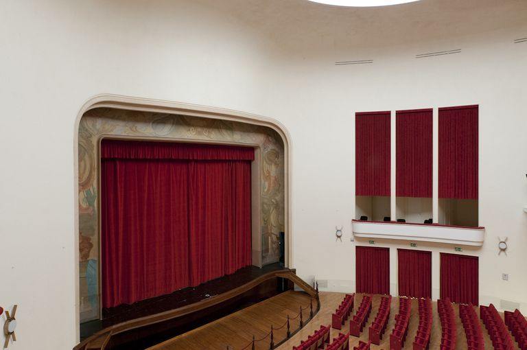 A Marcello Avenali (1912 – 1981), celebre artista romano particolarmente attivo nella prima metà del Novecento, sono affidate le decorazioni pittoriche del teatro. Attualmente si conserva il boccascena, la cui cornice presenta la decorazione pittorica originale recuperata nel corso del recente restauro.