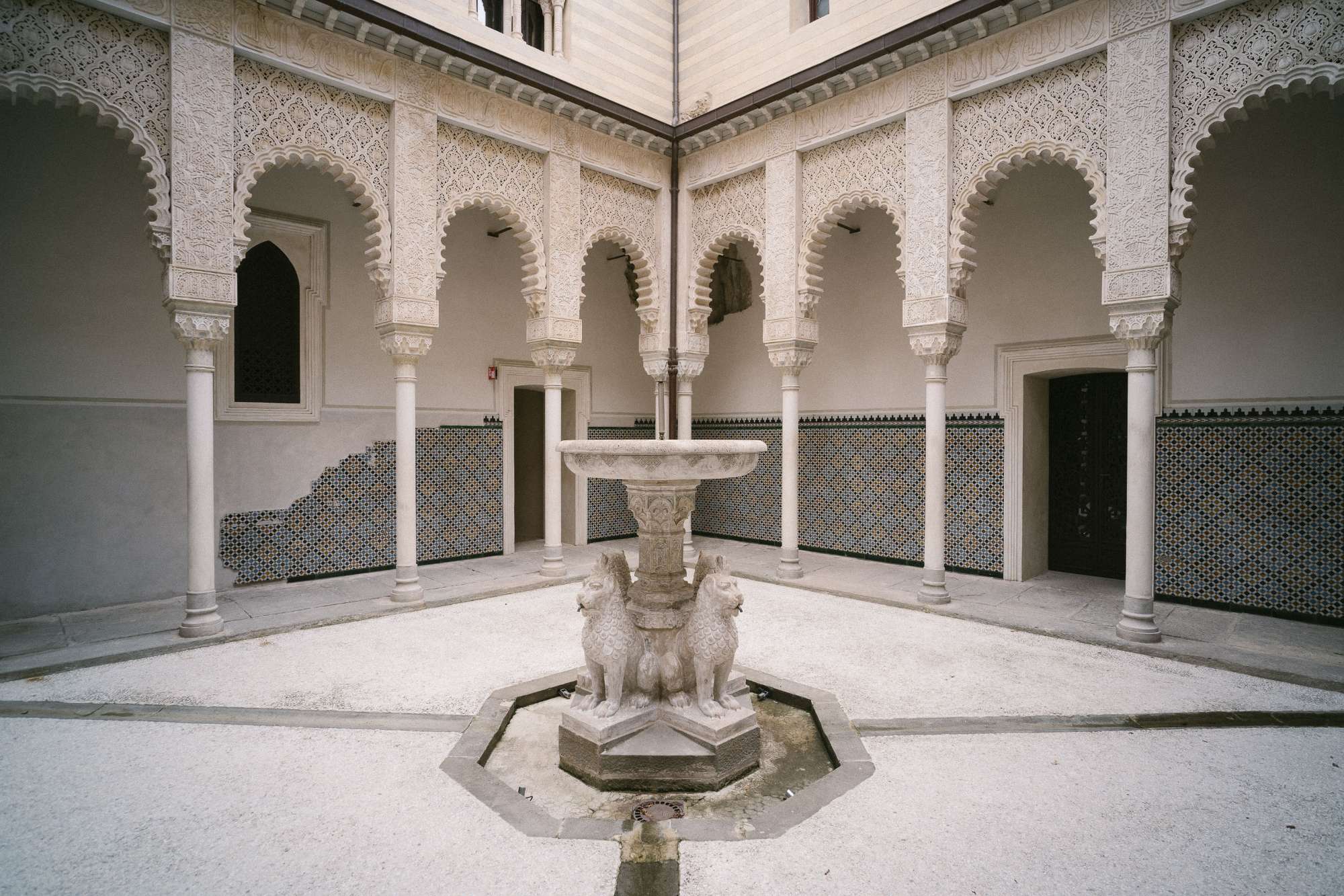 Rocchetta Mattei, cortile dei leoni. Foto di Luca Bacciocchi.