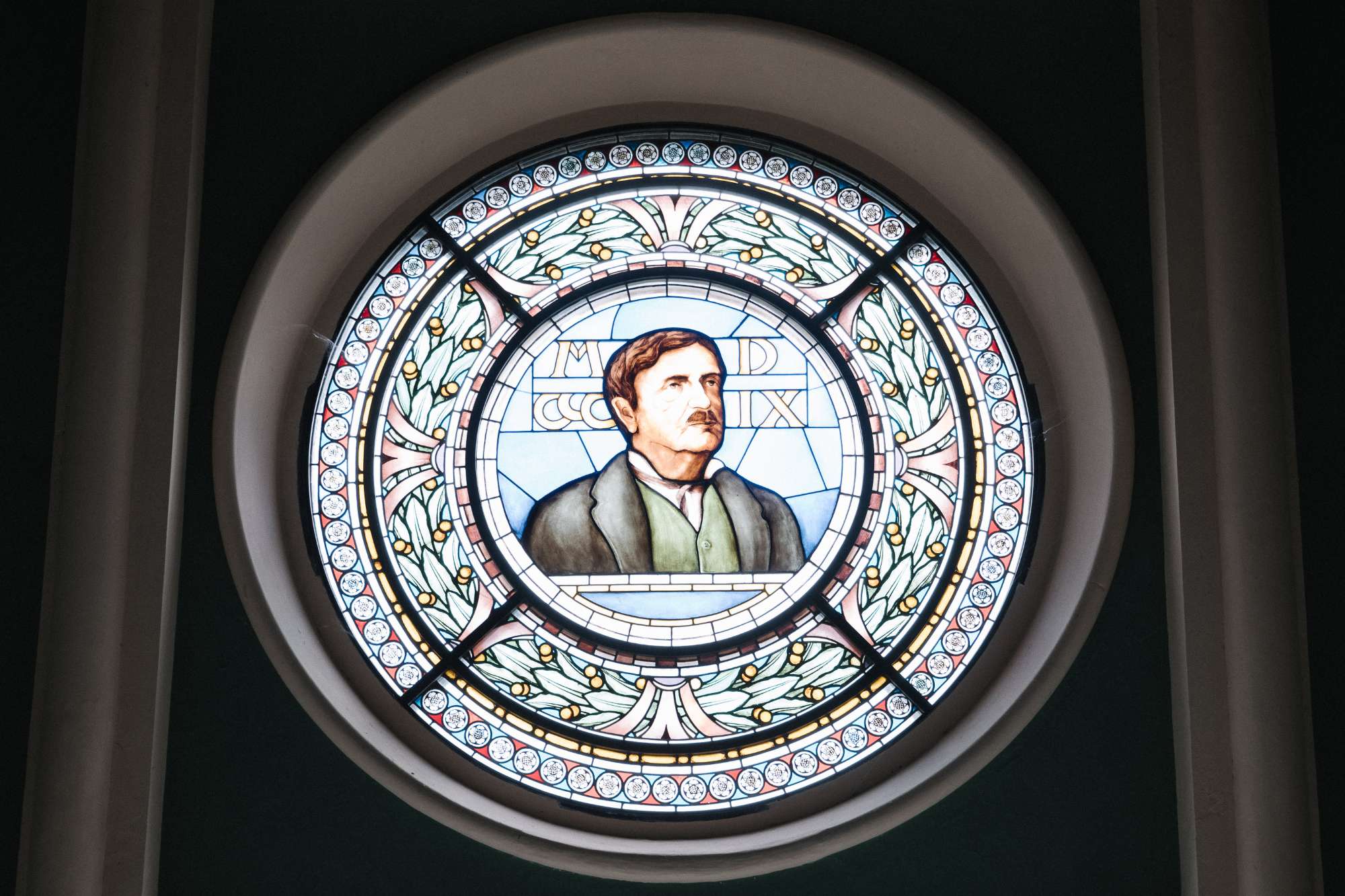 La Sala dei Novanta, in origine concepita da Mattei come mausoleo dedicato alla Regina Vittoria, fu poi trasformata in sala da ballo dal figlio adottivo Mario Venturoli al principio del Novecento, come testimoniano l’arredo e le decorazioni in stile Liberty. La grande vetrata ovale reca l’immagine di Cesare Mattei con la sua data di nascita. La sala deriva il suo nome dal mito che l’eccentrico padrone di casa avrebbe voluto festeggiare qui i suoi novant’anni con ottantanove novantenni.
