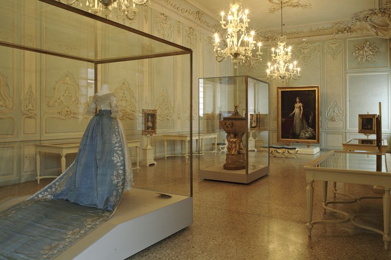 Cimeli di Maria Luigia costituiscono il 'Museo Napoleonico', allestito nel salone e in due stanze contigue. Qui si possono ammirare alcuni capi preziosi del guardaroba della sovrana: il manto ducale ricamato in platino, frammenti del Mantello imperiale e l'abito da cerimonia donatole da Napoleone nel 1810; la famosa corbeille nuziale disegnata da Prud'hon, il calco della mano della duchessa, opera del Canova, un frammento di mantello imperiale donato dalla Duchessa per sovvenire ai bisogni dei parmigiani colpiti dal colera, album, diari, gioielli, effetti personali e persino il cestino da lavoro dell'imperatrice, autrice di alcune delle vedute ad acquerello esposte nelle sale. Nella collezione non mancano lettere del Bonaparte e del Re di Roma. Nel Museo Toschi, nell'omonima sezione, è poi documentata l'attività incisoria praticata dall'artista parmigiano, mentre nella Raccolta Petitot si annoverano disegni dell'architetto e incisioni di Benigno Bossi. Una raccolta di acquerelli, incisioni e dipinti del XIX secolo e opere francesi del XVIII secolo, allineate in un'apposita sala, completano l'arredo del palazzo. Nell'Archivio del museo sono ordinate ottocento lettere di Maria Luigia alla figlia Albertina.