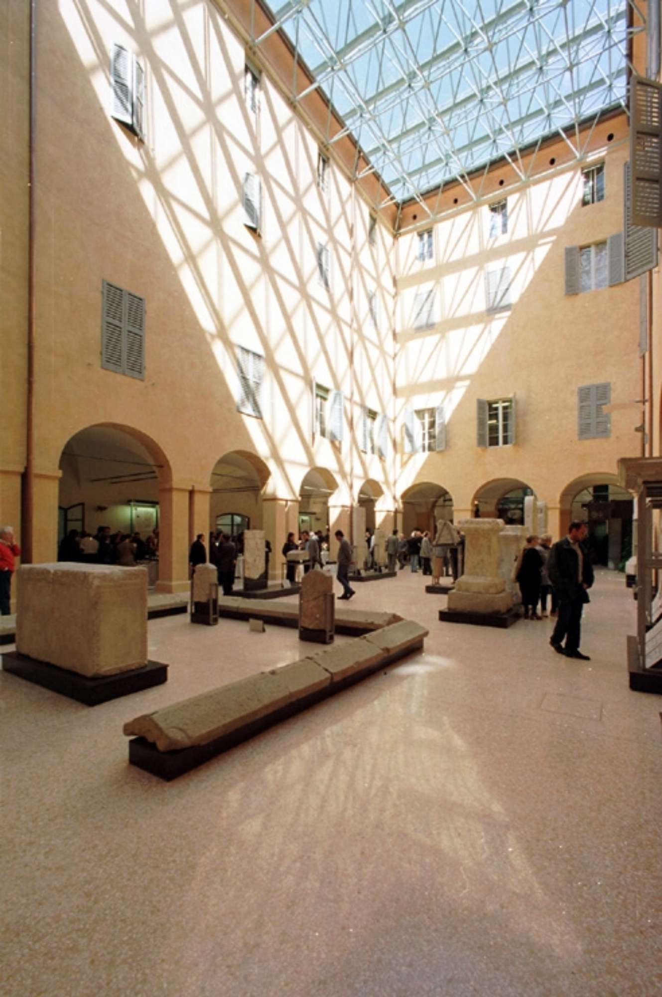 Storia dell’edificio Il Palazzo dei Musei, progettato ed innalzato fra il 1764 e il 1771 dall'architetto Pietro Termanini su incarico del duca Francesco III d'Este, forniva originariamente allocazione all'Arsenale ducale e fu in seguito trasformato in Albergo dei Poveri. L'istituzione, carica di oneri improduttivi e di problemi gestionali, venne fatta evacuare nel 1778 da Ercole II e destinata a diventare sede delle Arti, con lo scopo di fabbricare veli, lustrini, panni. Nel 1881 la Commissione accademica di Belle Arti approvò con favore l'acquisizione dell'immobile da parte del Comune, che ne adibì l'ala frontale a sede museale multipla. Il progetto definitivo trovò conclusione solo quando il Palazzo dei Musei, dopo una profonda ristrutturazione, cominciò ad ospitare il Museo Lapidario, il Medagliere, la Biblioteca e la Galleria Estense.