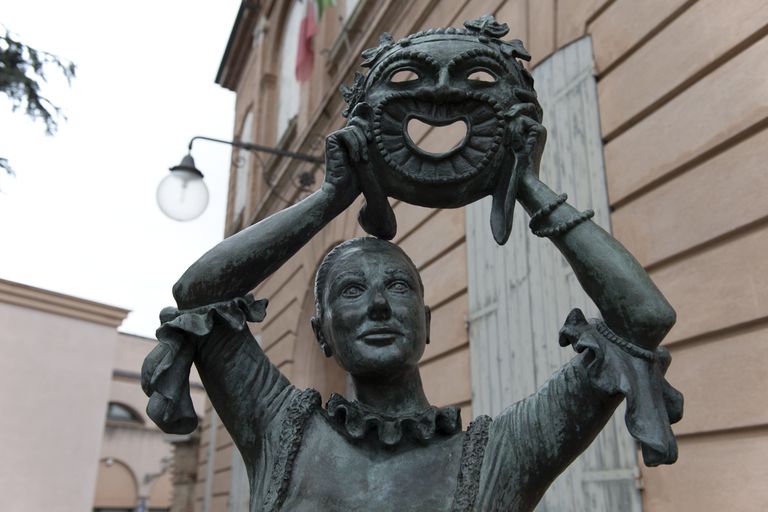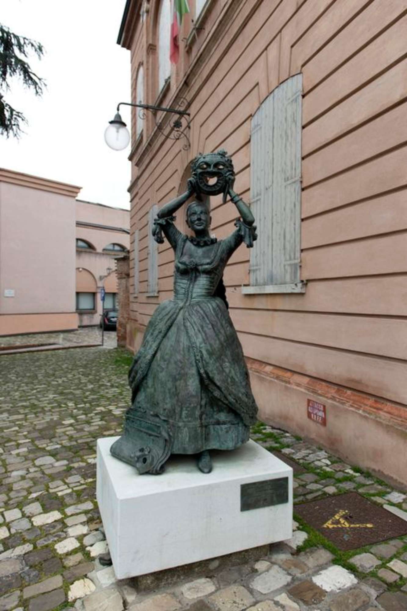 Longiano, Teatro Comunale Errico Petrella, scultura posta all'esterno (foto Andrea Scardova, IBC) 2017