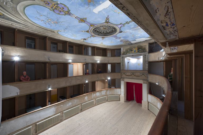 Poi nel 1919 (data incisa sul lunettone della finestra centrale della facciata), fu modificata la pianta che divenne semicircolare, rimasero inalterati i palchi ma vennero rifatte le decorazioni che tuttora mostrano un aspetto del primo novecentesco. Il teatro rimase chiuso per parecchi anni e fu trasformato anche in magazzino. L'arredamento originale, l'impianto di illuminazione e le scene sono andati perduti. Il Comune ha intrapreso un'opera di restauro tra gli anni Ottanta e Novanta, realizzando opere di consolidamento, intervenendo sul tetto e l'impiantistica e ripristinando i serramenti. (Caterina Spada – Lidia Bortolotti)