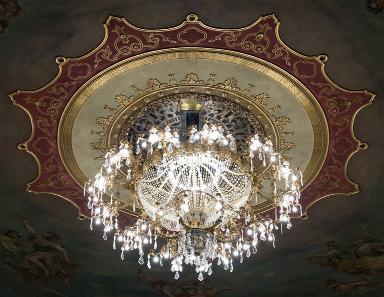 Parma, Teatro Regio, la sala teatrale: particolare del rosone centrale e del lampadario (foto Andrea Scardova, IBC) 2018