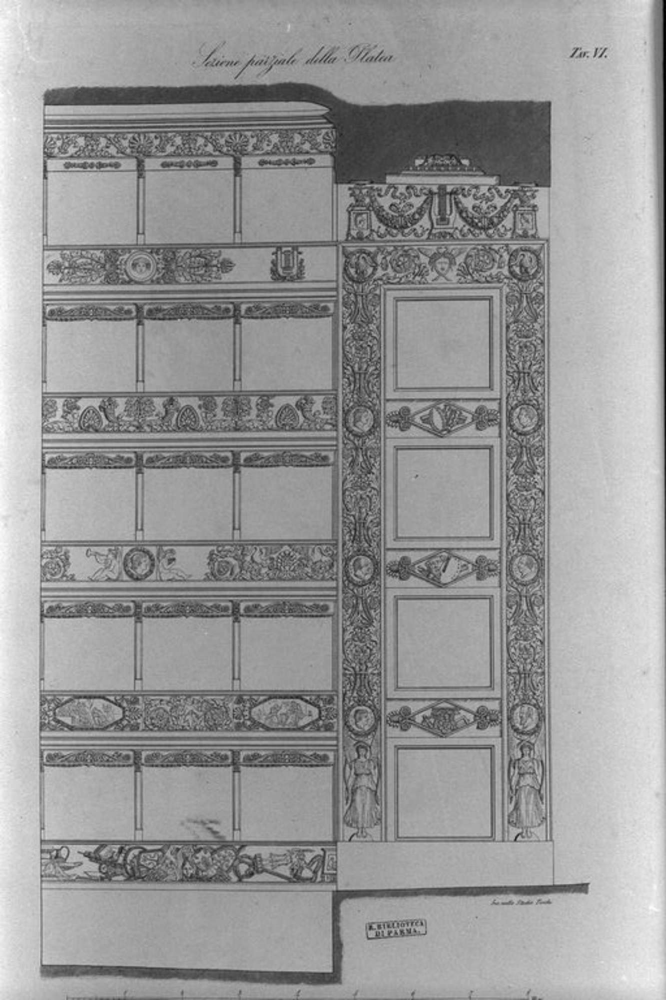 Parma, Teatro Regio, visione parziale dei palchi. Da G. B. Niccolosi, Il Nuovo Teatro di Parma, rappresentato con tavole intagliate nello studio di P. Toschi, Parma 1829 (Fototeca IBC)