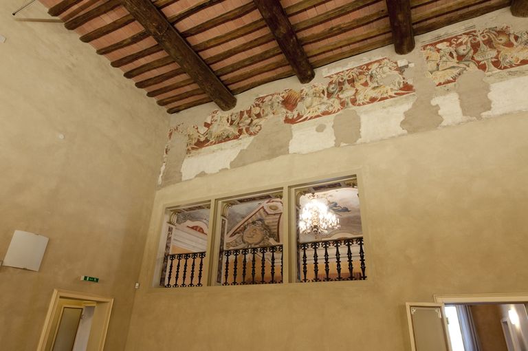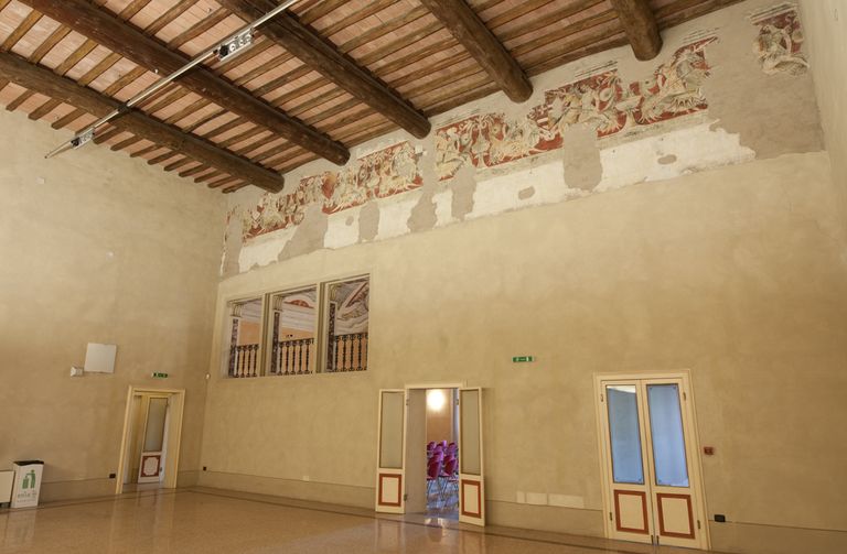 Si ricorda inoltre che il piano terreno dell'abitazione che un tempo era stata dell'umanista Niccolò conte di Correggio detto il Postumo (1450-1508), ospitò per alcuni anni una compagnia di giovani dilettanti. I locali erano stati concessi dal duca di Modena e signore di Correggio nel 1654 dopo una prima richiesta nel 1642 e una seconda nel 1653; le sale erano situate a fianco del palazzo dei Principi, sede attuale del Teatro Comunale Bonifazio Asioli. Nel 1654 Pietro Rosa, come soprintendente alle iniziative del teatro, fa eseguire i primi lavori che proseguono ancora nel 1660.