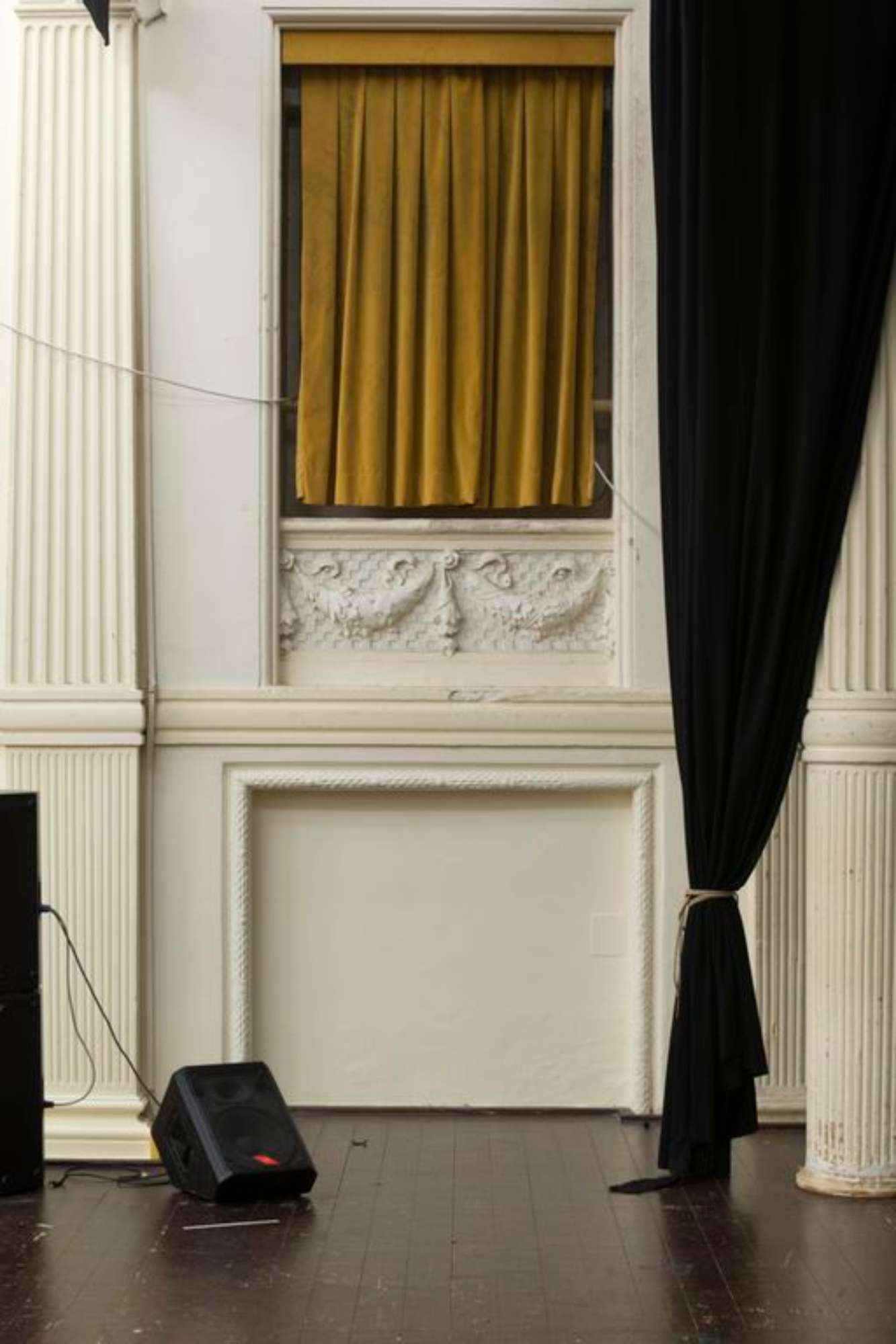 In questo spazio nella seconda metà del XV secolo il duca Ercole I d’Este fece erigere la Cappella Ducale. Quando la città di Ferrara passò sotto lo Stato Pontificio la cappella venne concessa alla Confraternita dello Spirito Santo, officiata fino al 1616 fu in seguito sconsacrata. Nel 1660, dovendo sostituire in poco tempo la Gran Sala delle Commedie (secondo teatro degli Accademici Intrepidi) distrutta da un incendio all’inizio del Carnevale, fu dato incarico agli architetti Carlo Pasetti e Alberto Gnoli di trasformare l’ex cappella in sala teatrale. In pochi giorni la sala teatrale dotata di palchetti venne compiuta e fu inaugurata con la commedia "La casa con due porte dificilmente si guarda" il 9 gennaio 1660. Successivamente forse ad opera degli stessi Pasetti e Gnoli venne risistemata affinché la platea fosse interamente riservata al pubblico, si fecero più ordini di palchetti, la scena mutevole e un’adeguata dotazione di macchine teatrali (Molinari 1982, p. 116). Nota come Teatro in Cortile, per questa sala cessa l’utilizzo come teatro, giudicato da taluni scandaloso, alla fine del secolo e nel 1693 ritorna al culto come Chiesa Nuova; riedificata in stile barocco viene dedicata a San Maurelio. L’antica chiesa è rievocata dal pregevole portale (frutto di un assemblaggio di elementi architettonici di epoche diverse) con le statue di San Giorgio e San Maurelio sulla facciata della Sala Estense e di cui costituisce l’ingresso. (Lidia Bortolotti)