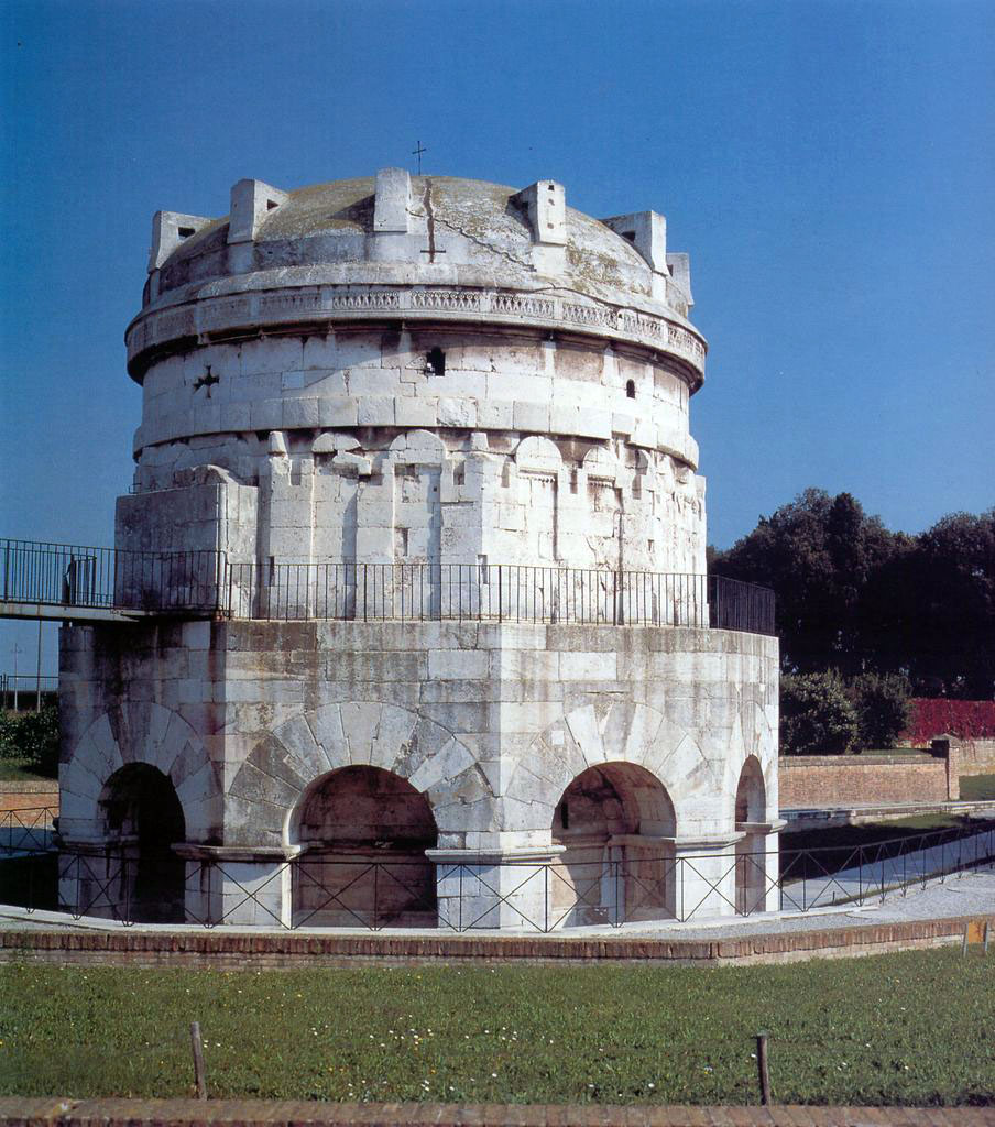 Risalente a poco dopo il 520 d.C., come informano le fonti, fu eretto da Teodorico vivente come tomba, a circa un chilometro dal centro della città, là dove era ubicato il sepolcreto dei Goti. La struttura, che si articola in due ordini sovrapposti, entrambi decagonali, è interamente costituita in blocchi squadrati di pietra d'Aurisina. E' sormontato da un enorme monolite del diametro di 10 metri e dal peso di 300 tonnellate. L’ordine inferiore, internamente a croce greca, aveva probabilmente la funzione di cappella per lo svolgimento delle liturgie funebri.