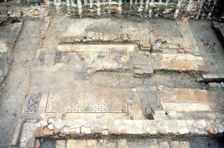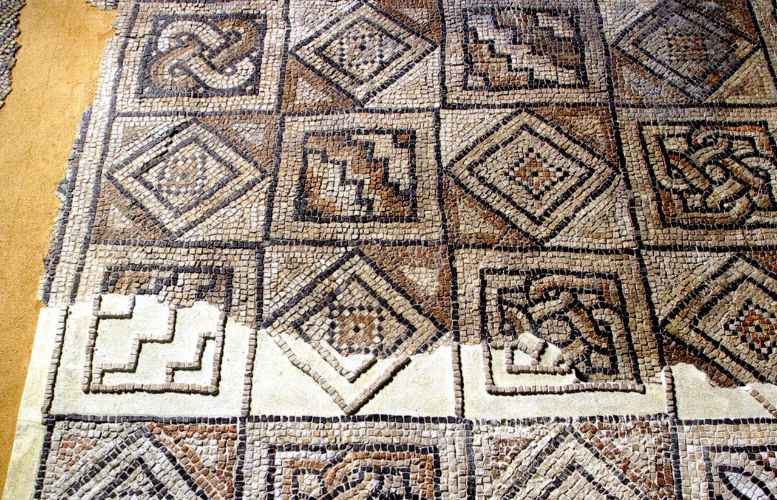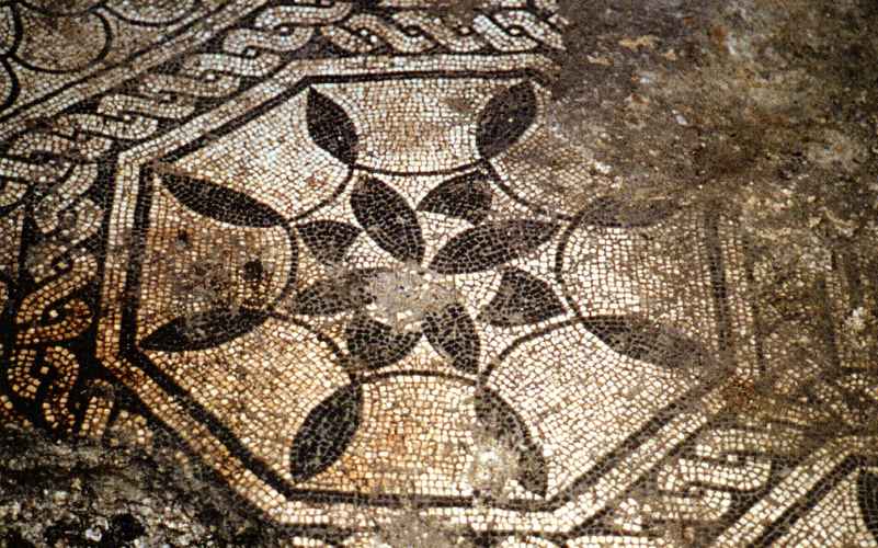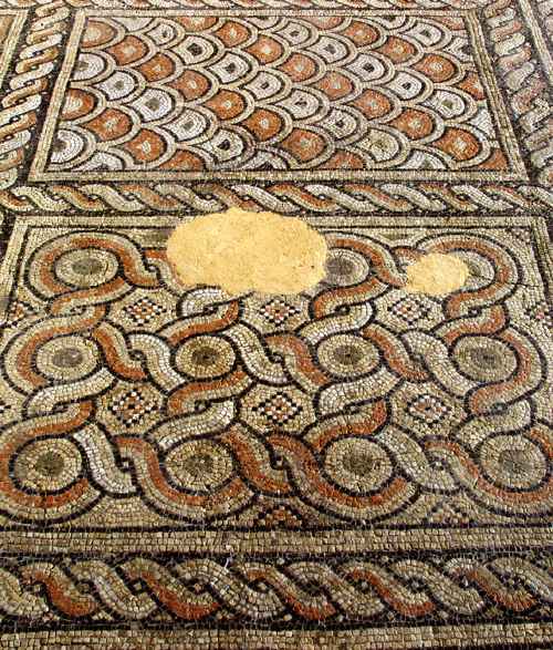 Ravenna, Domus dei Tappeti di Pietra, Stanza 1, decorazione geometrica vegetale con cantharoi