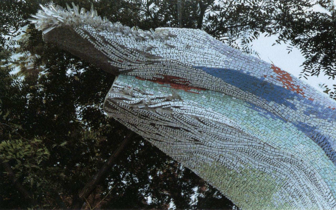 Grandi volumi curvi e rastremati verso l'alto rappresentano le ali di una colomba, il cui candore è definito da innumerevoli striature di tessere dalle tinte chiare e brillanti. Queste sfumano nella parte inferiore in toni più scuri, dove i rilievi che definiscono il profilo dell'ala si interrompono bruscamente ad indicare un punto di frattura. L'autrice interpreta il tradizionale simbolo della pace mostrando gli effetti più negativi della sua conquista da parte dell'uomo e sottolinea che il mosaico, come medium artistico, partecipa ad esprimere l'auspicio di un bene solido e duraturo (MOSAICO D'AMICIZIA FRA I POPOLI 1988).