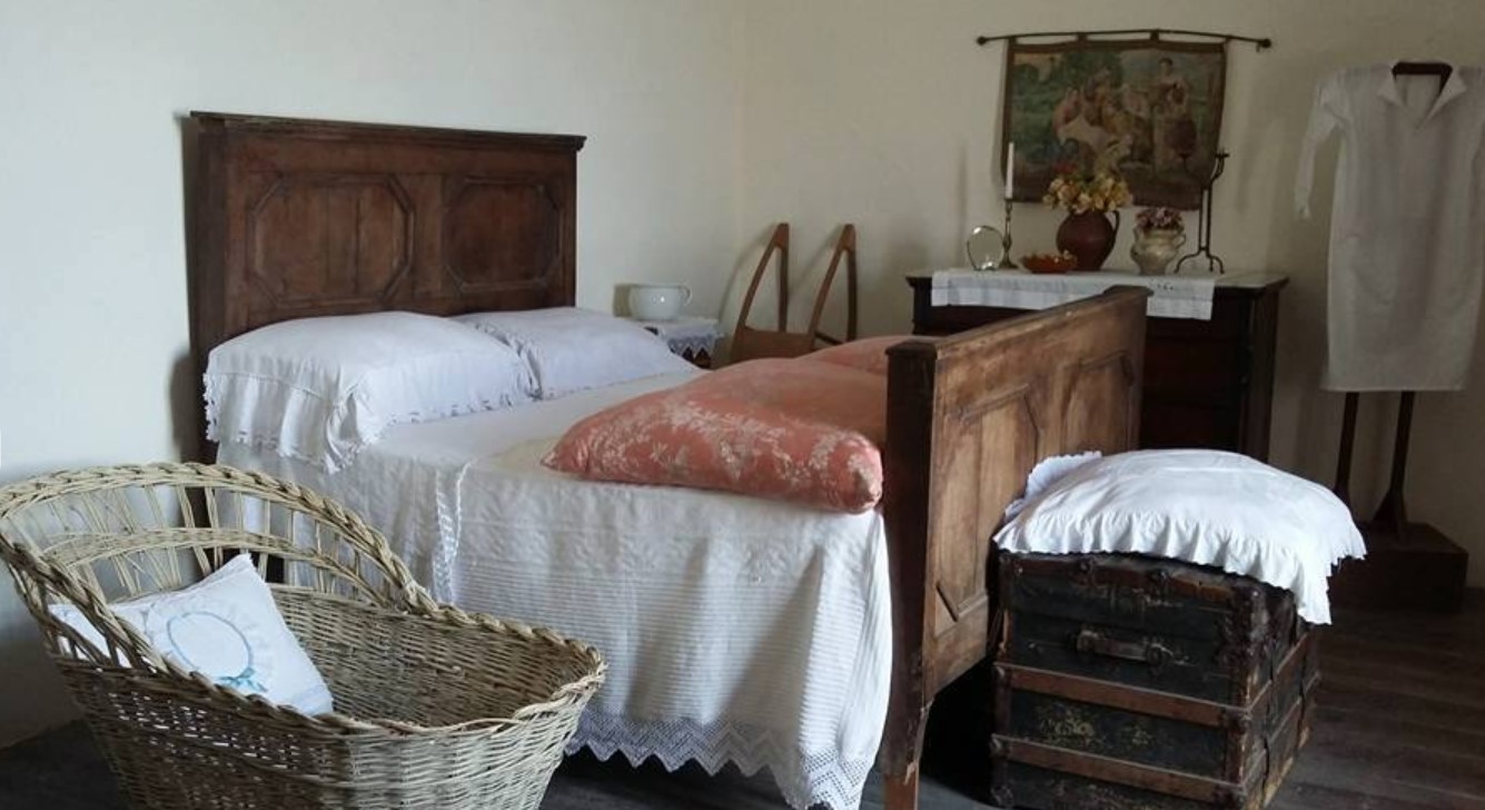 La ricostruzione di alcuni ambienti domestici, tra cui una camera da letto, include elementi tessili e campioni di biancheria.