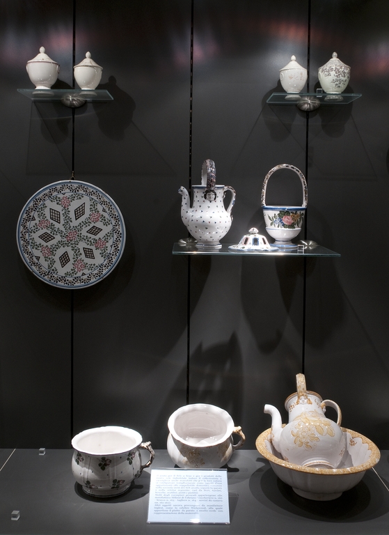 Molti degli esemplari presenti appartengono alla Manifattura Miliani di Fabriano (zuccheriere, brocche, taglieri, servizi da camera).