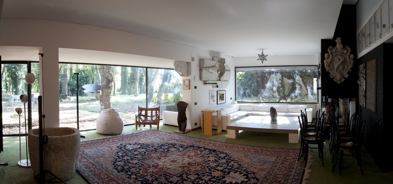 Il luogo dove Dante Bighi scelse di vivere è stato concepito fin dal suo primo segno come sistema integrato tra arte, architettura e natura. Una contenitore e un contenuto che dovevano continuamente autoalimentarsi attraverso questa integrazione tra le arti anche dopo la scomparsa del suo autore. E così la Villa ha cambiato i materiali e le funzioni interne più volte pur rimanendo fedele al suo scheletro architettonico e al impalcato culturale voluto dal suo ideatore. Alcuni elementi addirittura sono inamovibili e paiono essere "innestati" nell'architettura.