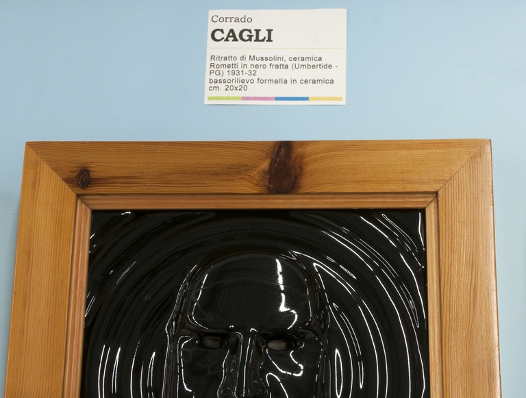 Corrado Cagli, Dante Baldelli Ritratto di Mussolini Bassorilievo in ceramica nero di fratta Ceramica Rometti, Umbertide 1931-‘32 cm.20×20 (Foto A. Scardova, IBC 2016)