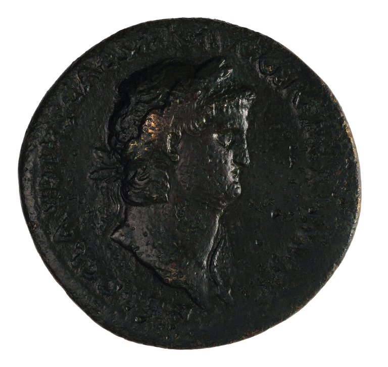 Dritto: Testa laureata di Nerone a d., con egida