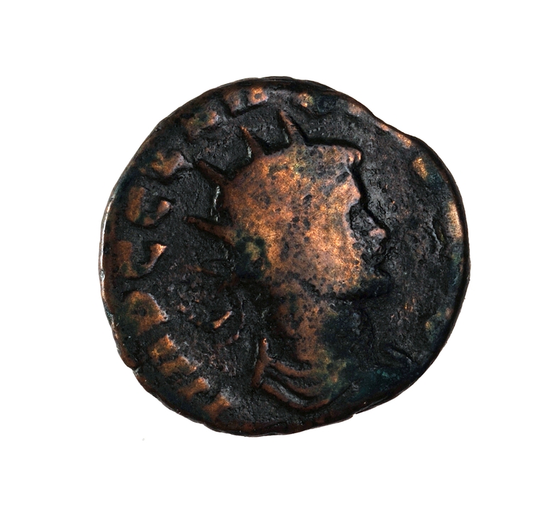 Dritto: Busto radiato e drappeggiato di Claudio II a d.