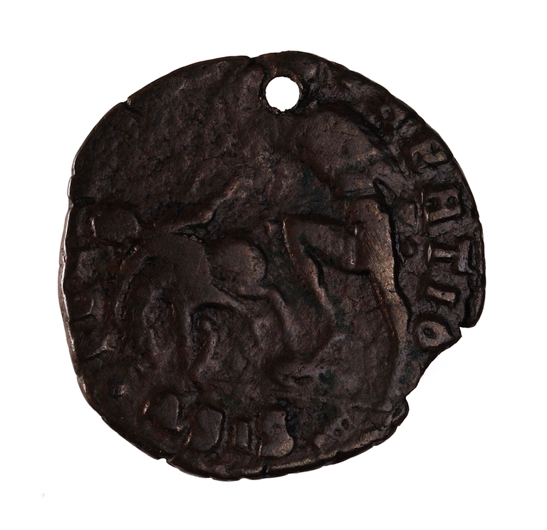 Rovescio: Soldato, in piedi a s., in atto di colpire con una lancia un cavaliere caduto.