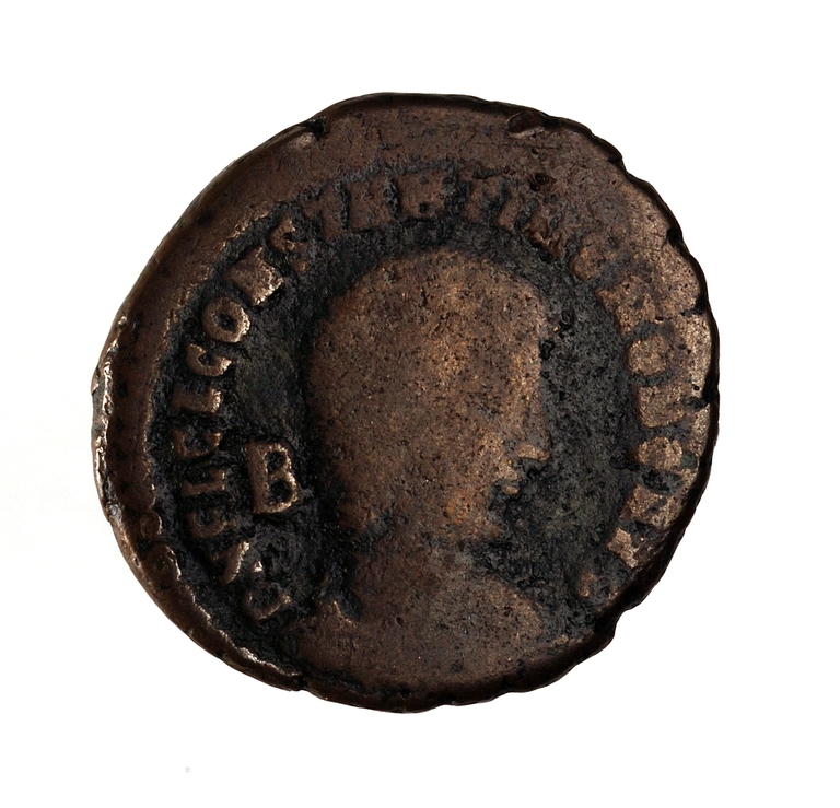 Dritto: Busto drappeggiato e corazzato di Costanzo Gallo a d. Nel campo, a s., B
