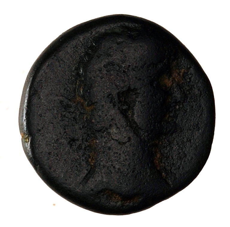 Dritto: Testa laureata di Adriano a d.
