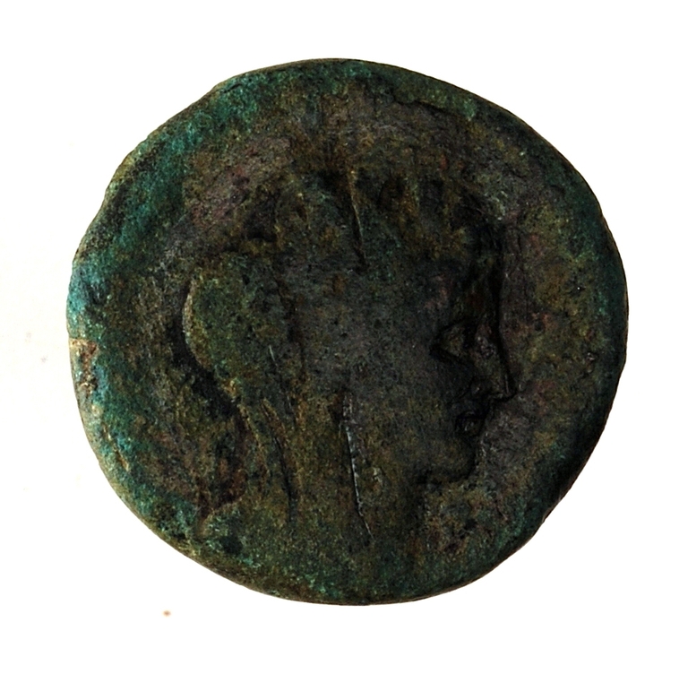 Dritto: Testa turrita e velata di Tyche a d.