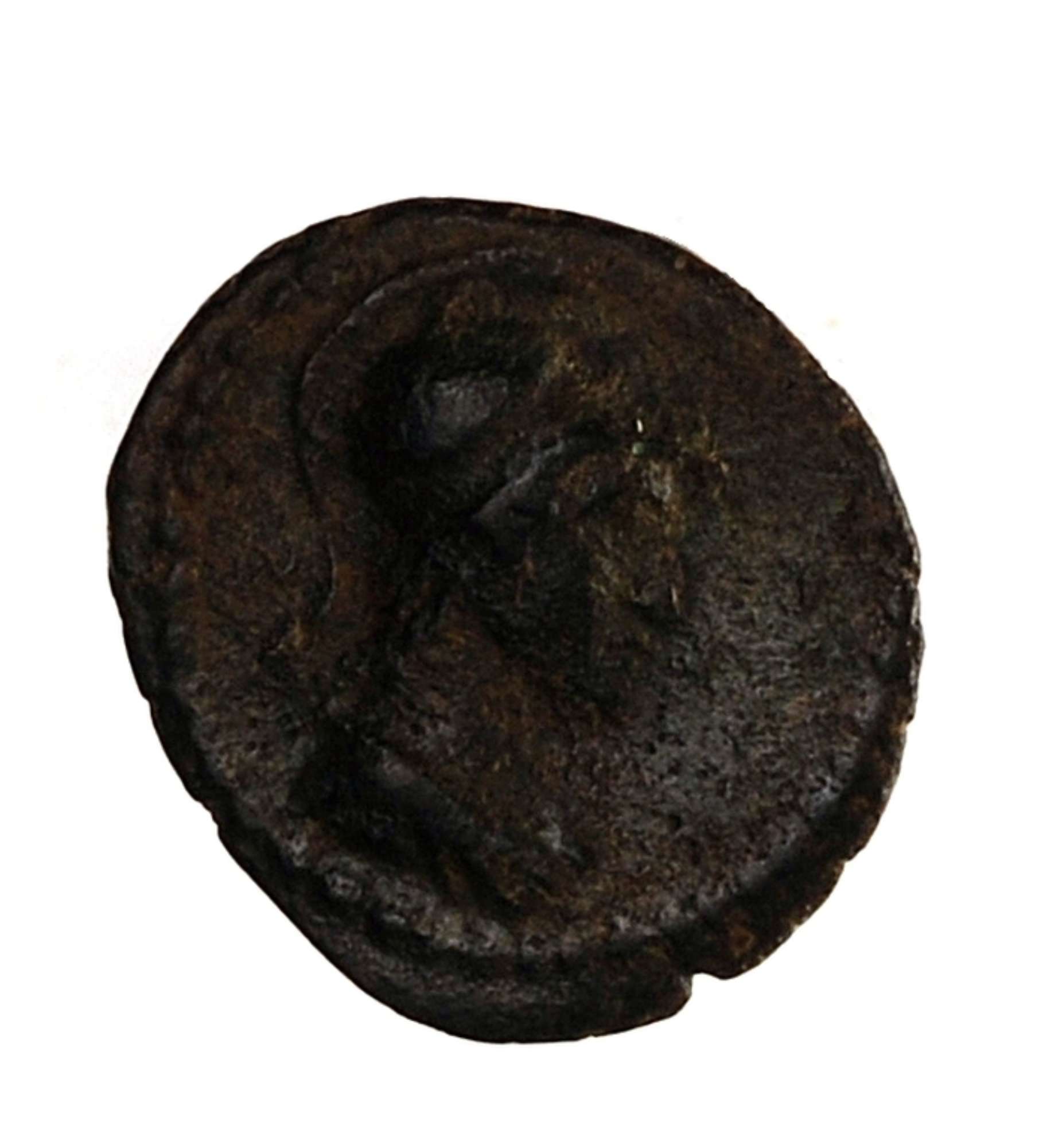 Dritto: Busto elmato e drappeggiato di Minerva a d.