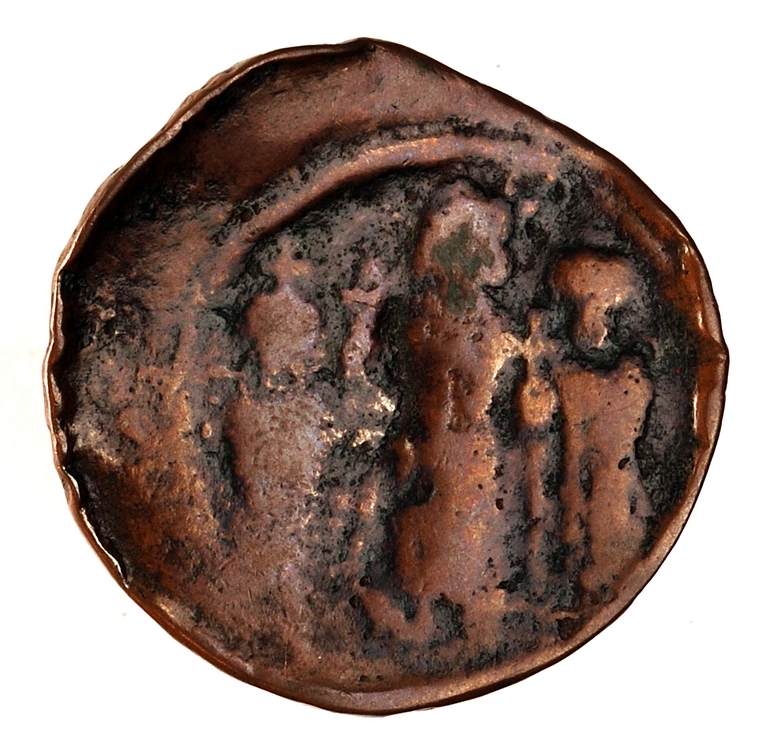 Rovescio: Nel campo, segno di valore M; sopra, monogramma; sotto, alfa.