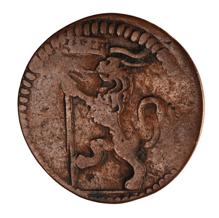 Dritto: Leone rampante a s. con vessillo fra le zampe anteriori.