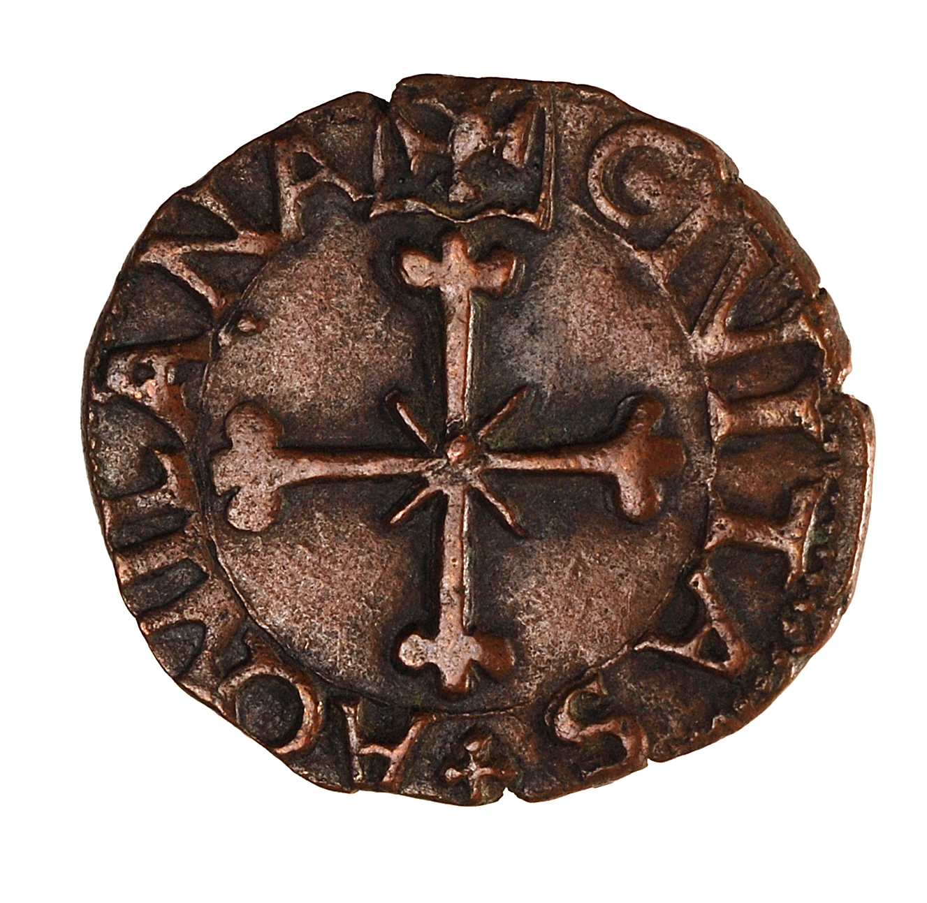 Rovescio: Croce trilobata sopra scudetto con aquila.