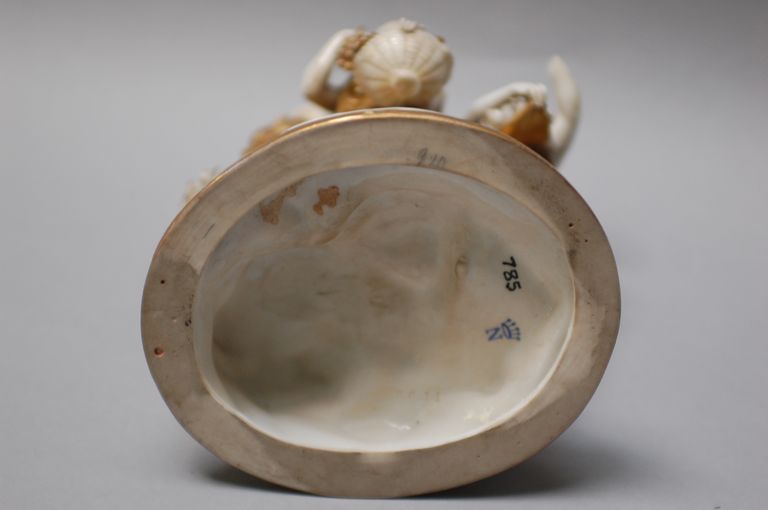 L'attribuzione alla manifattura Eckert & Co. avviene in base a produzioni simili attribuibili a questa fabbrica. Questa marca, definita Neapel-Marke, venne registrata però solo dopo il 1915 e presentava il monogramma "AEV" (Aelteste Volkstedter Porzellanfabrik), ma la produzione di queste sculturine è per la loro tipologia da inserirsi probabilmente tra la fine del XIX secolo e i primi anni del successivo.