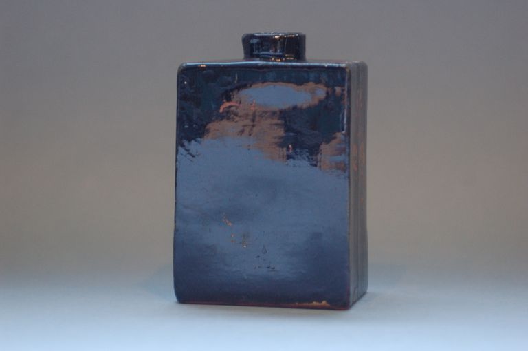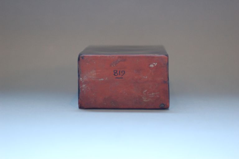 Porta thè in gres rosso; la decorazione in oro è di fatto completamente scomparsa.