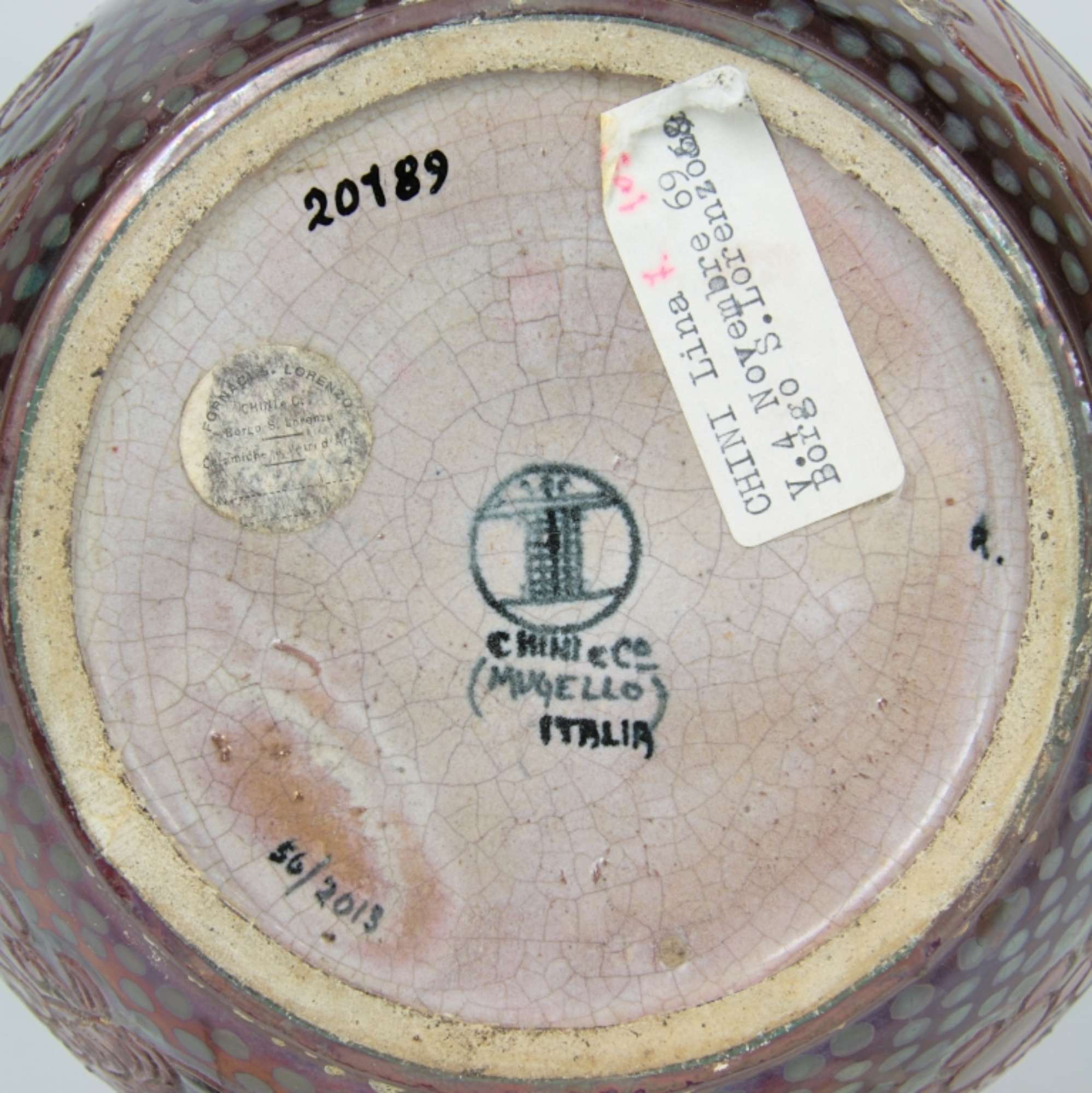 Esposto alla mostra collaterale "La Manifattura Chini dall'Arte della Ceramica alle Fornaci S. Lorenzo", nell'ambito del XXXVII Concorso Int., 1979.