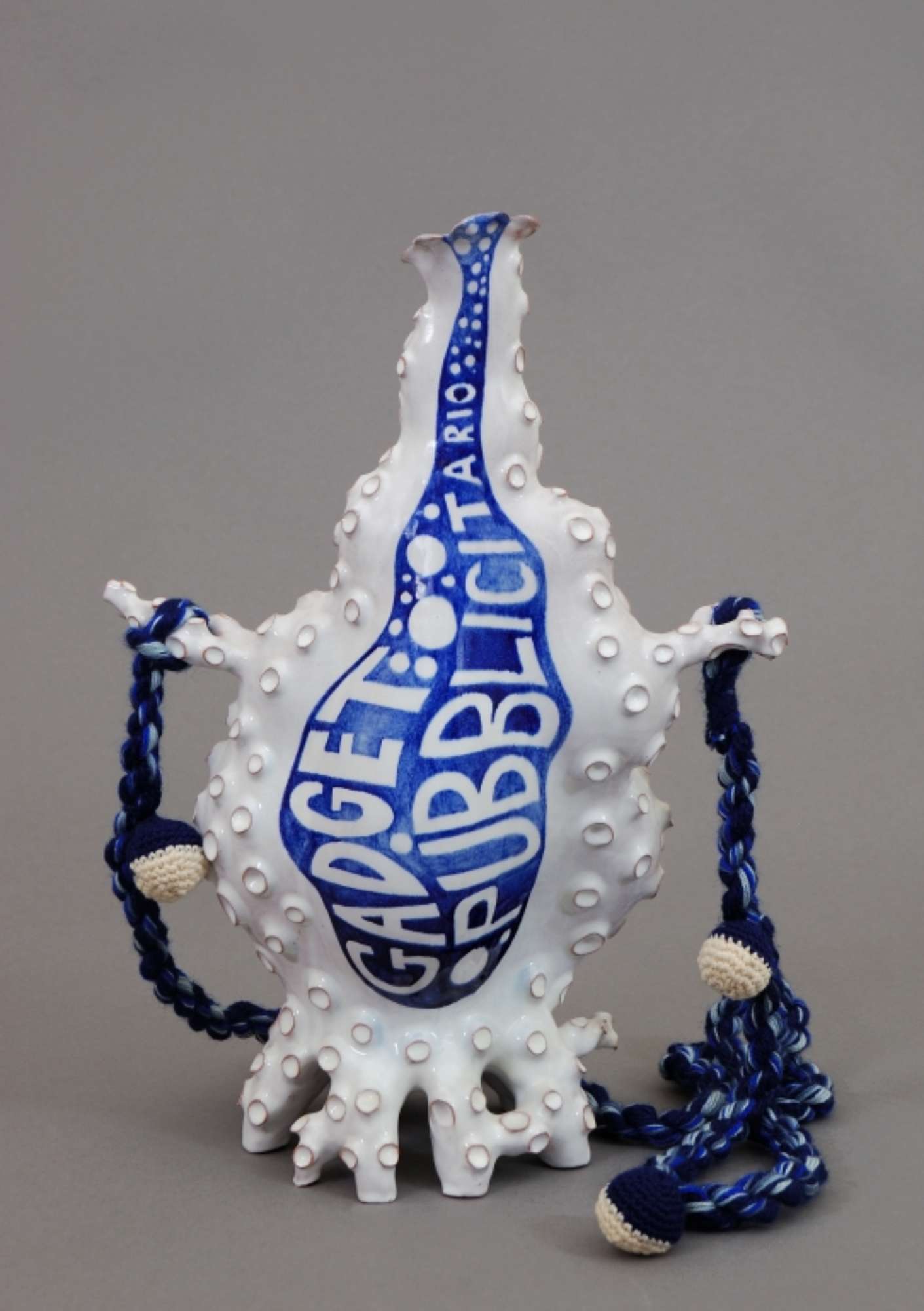 L'opera riproduce una fiasca da pellegrino deformata e con superficie mossa da tanti piccoli crateri. Sulle due facciate, su fondo campito in blu, sono rispettivamente le scritte "GADGET PUBBLICITARIO" e "BERTOZZI DAL MONTE-CASONI S.N.C.". Una corda con quattro pon-pon in lana è fissata ai due occhielli laterali. Sul fondo la firma in blu "1990-1991 BERTOZZI – CASONI S.N.C. FIASCA DA PELLEGRINO".