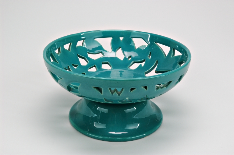 Costituita da una coppa semisferica intagliata a giorno, con motivi stilizzati, poggiante su piede troncoconico.