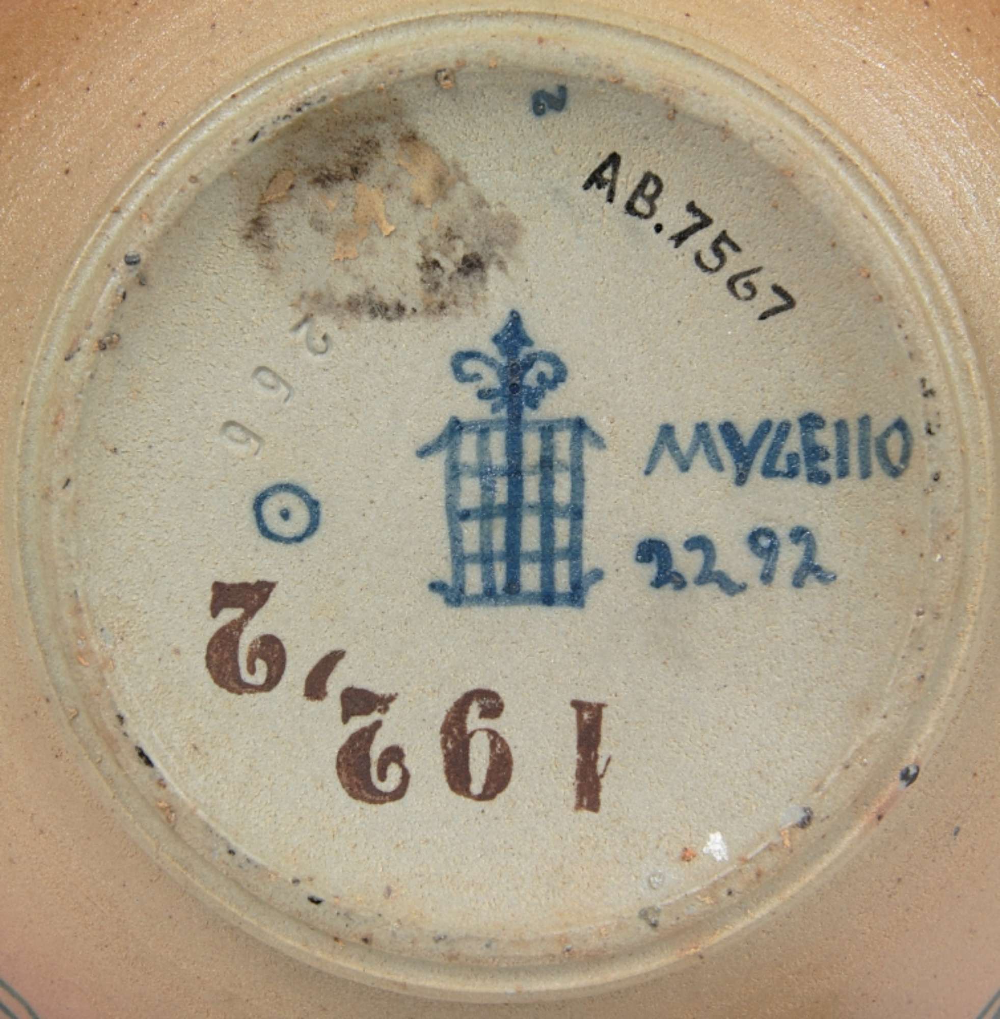 Marchio: grata con giglio stilizzato e scritta "MUGELLO", n. 2292, cerchietto e puntino e la lettera Z, in blu: n. 266 impresso.