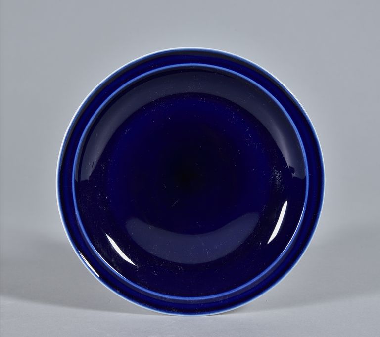 Piattello liscio con piccolo orlo disteso, smaltato all'interno in turchino, servizio "Party set".