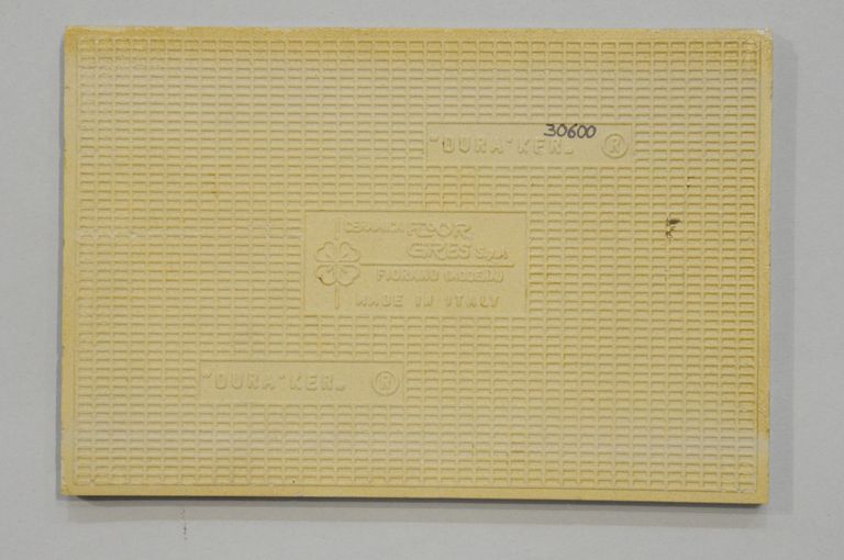 Nel retro a destra è presente la scritta a rilievo "DURA'KER", centralmente "CERAMICA FLOOR/ GRES SpA/ FIORANO (MODENA)/ MADE IN ITALY" e a sinistra nuovamente "DURA'KER".