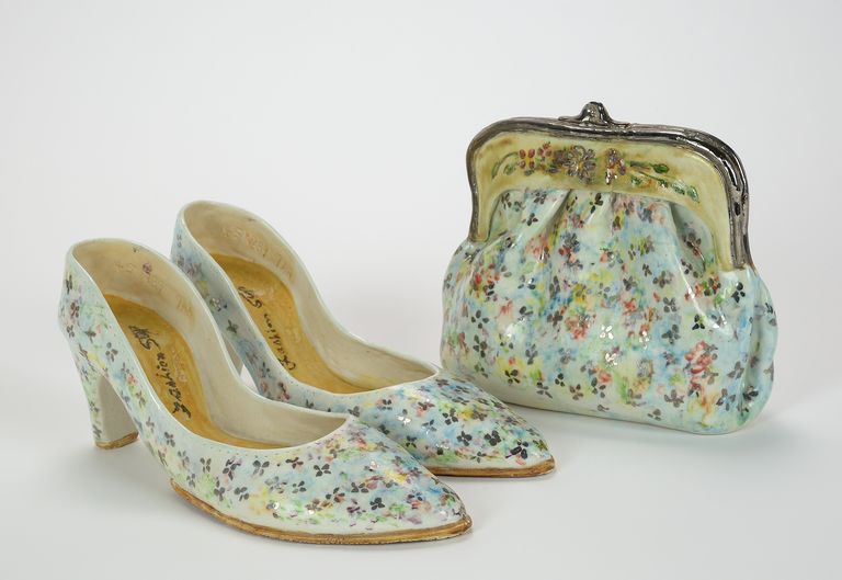 L'opera è composta da tre pezzi: due a forma di scarpa (decolletè) con tacco alto e uno a forma di borsetta. Tutti i pezzi portano la stessa decorazione floreale con colori verde, azzurro, giallo e viola sotto vetrina, con platino a terzo fuoco sullo sfondo bianco. Le solette delle scarpe sono testurizzate e dipinte con colore ruggine.