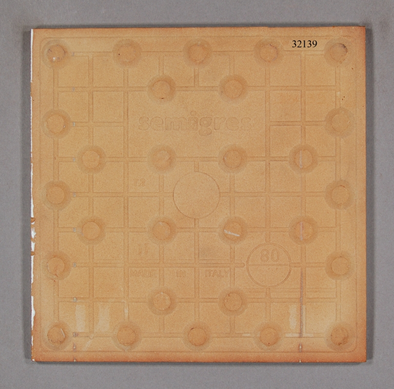Nel retro, al centro, dall'alto verso il basso sono impressi la scritta "semigres", una serie di caratteri alfanumerici ed infine "MADE IN ITALY".