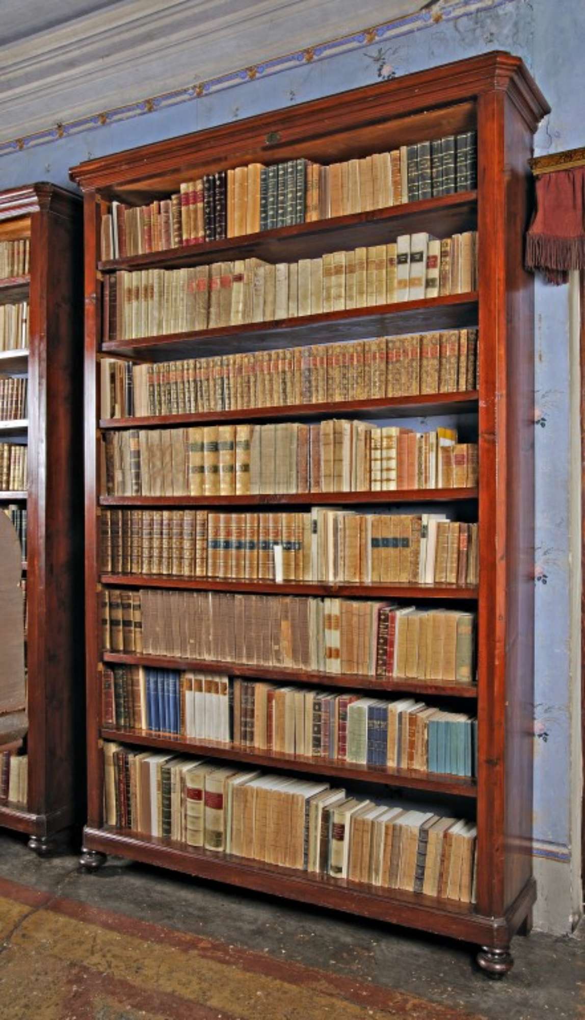 Semplice struttura a sei ripiani; piede anteriore a doppia trottola e cimasa a più cornici aggettanti.