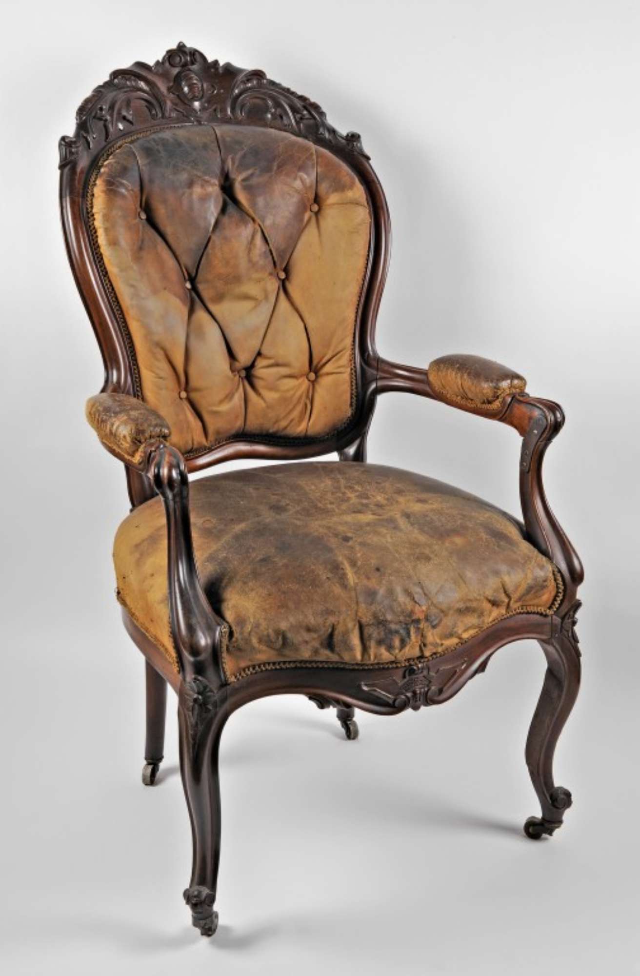 Esempio di mobilia Ottocentesco in stile ecclettico. La poltrona riveste importanza dal punto di vista storico: accolse Garibaldi ferito ad una gamba durante la battaglia in Aspromonte (29 agosto 1862), durante gli scontro tra l'esercito regio e i garibaldini. La poltrona venne donata a Carducci da Jessie White Mario.